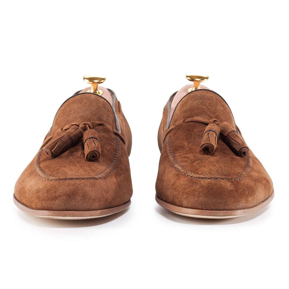 Лёгкие лоферы Paco Milan на тонкой кожаной подошве. Верх выполнен из мягкой бархатистой замши коричневого цвета. По бокам пропущен замшевый шнурок, завершающийся кисточками на подъёме. Внутренняя отделка из тонкой гладкой кожи. Конструкция Blake.