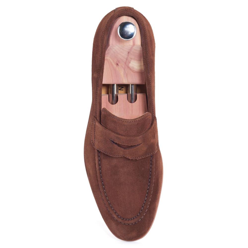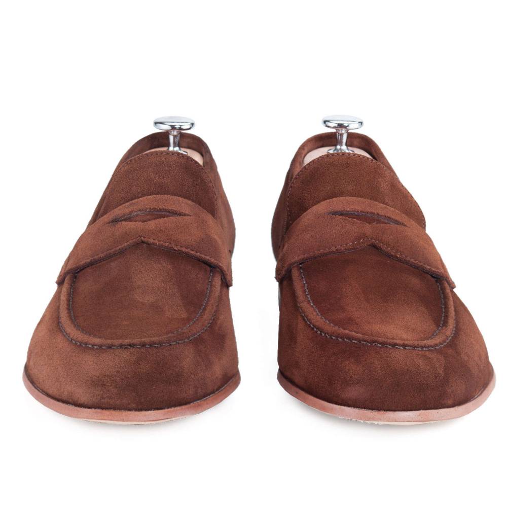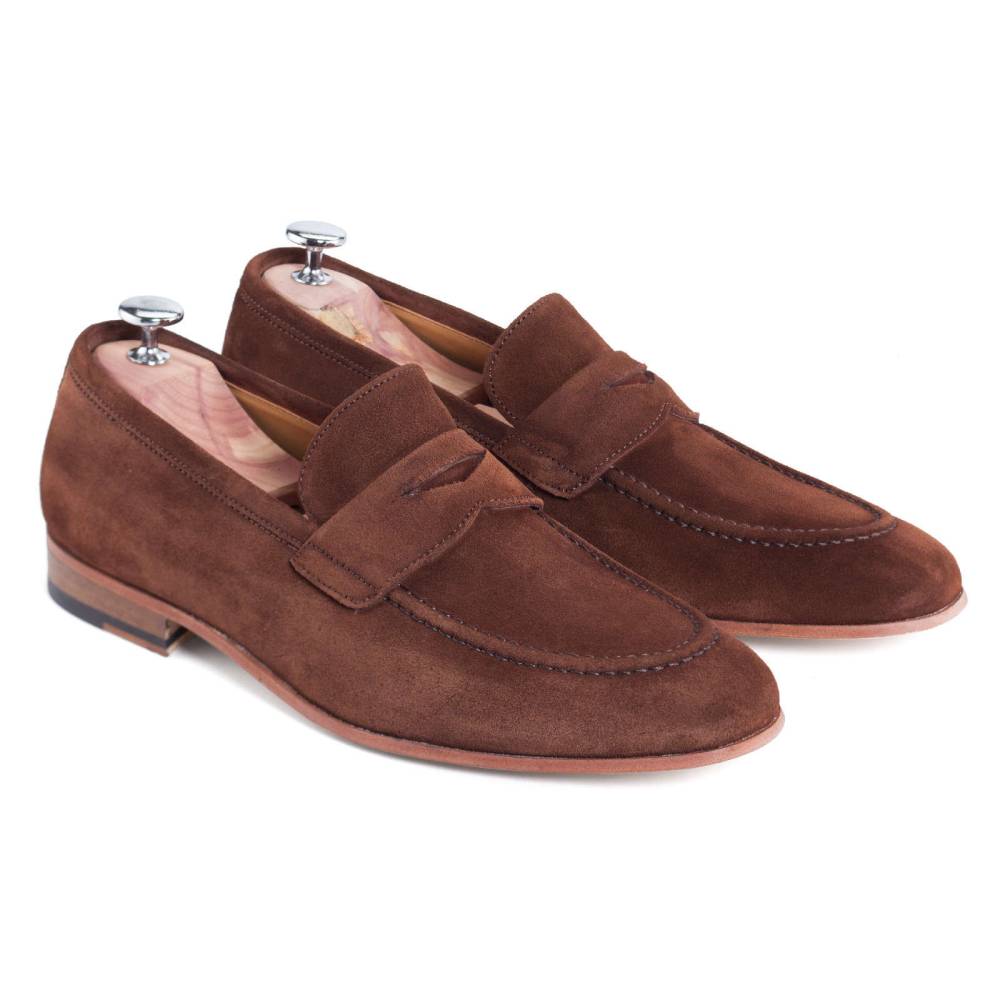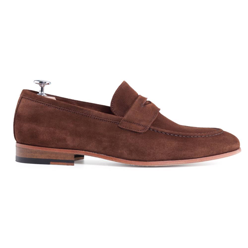 Лёгкие лоферы-пенни Paco Milan на тонкой кожаной подошве. Верх выполнен из мягкой бархатистой замши тёмно-коричневого цвета. Внутренняя отделка из тонкой гладкой кожи. Конструкция Blake.