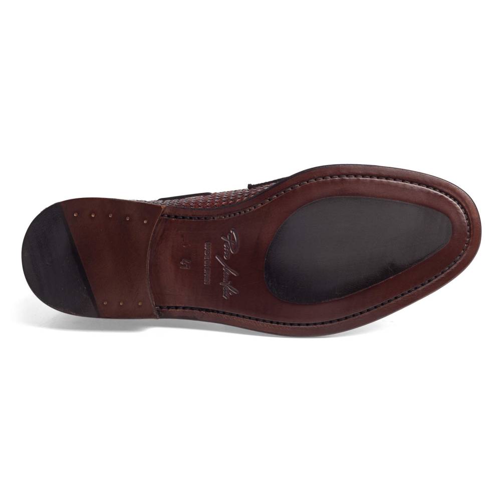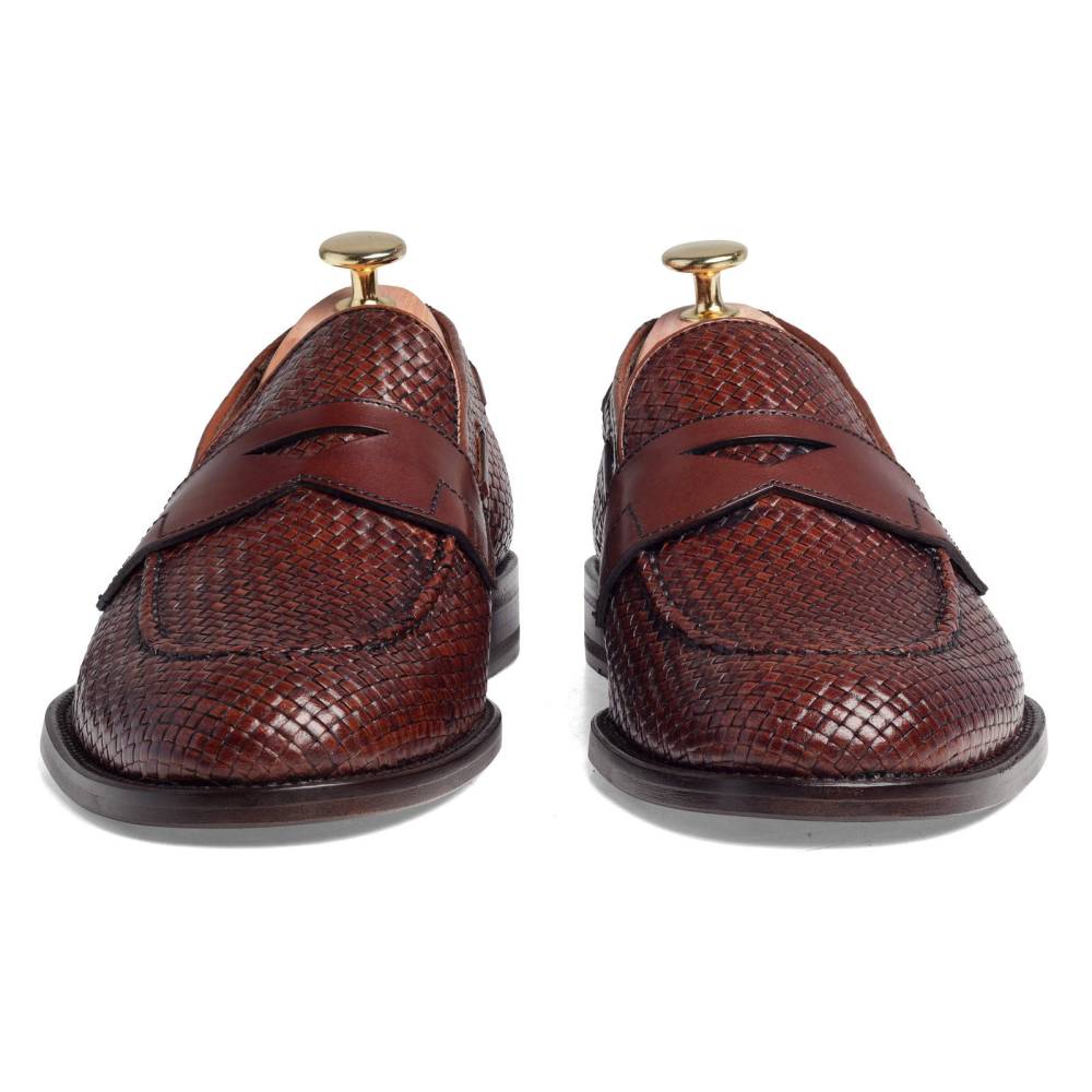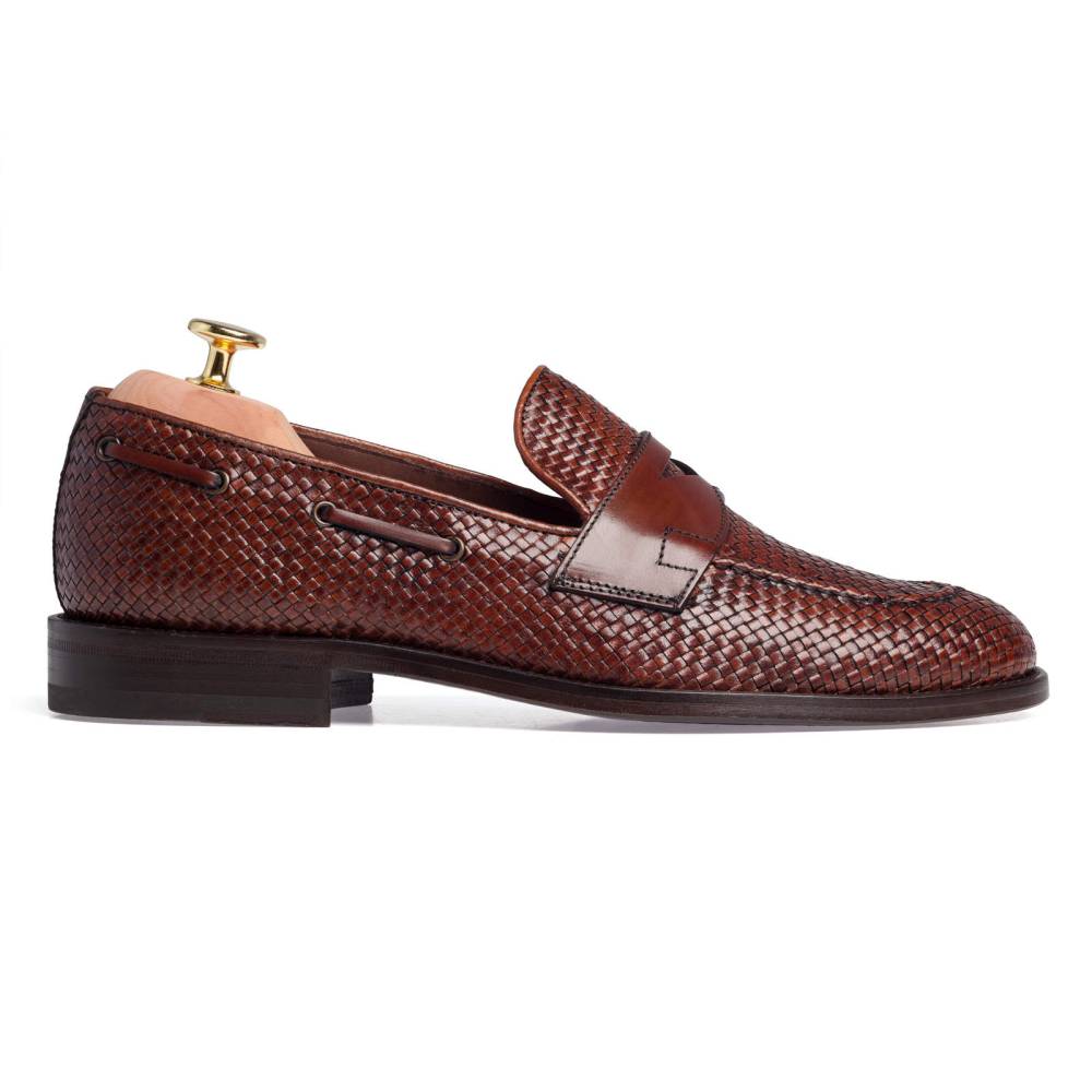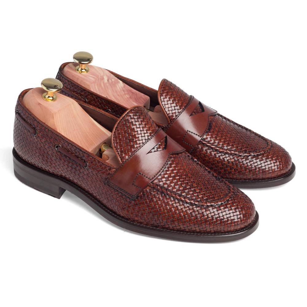 Лёгкие летние пени-лоферы от испанского бренда Paco Milan коричневого цвета. Верх выполнен из плетения узких полосок кожи в шахматном порядке, что обеспечивает хорошую вентиляцию при носке. Внутренняя отделка из тонкой мягкой кожи. Модель прошита по технологии Blake.