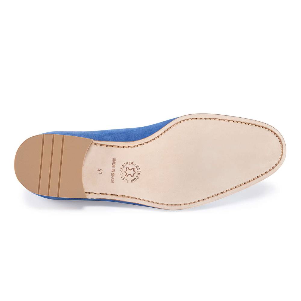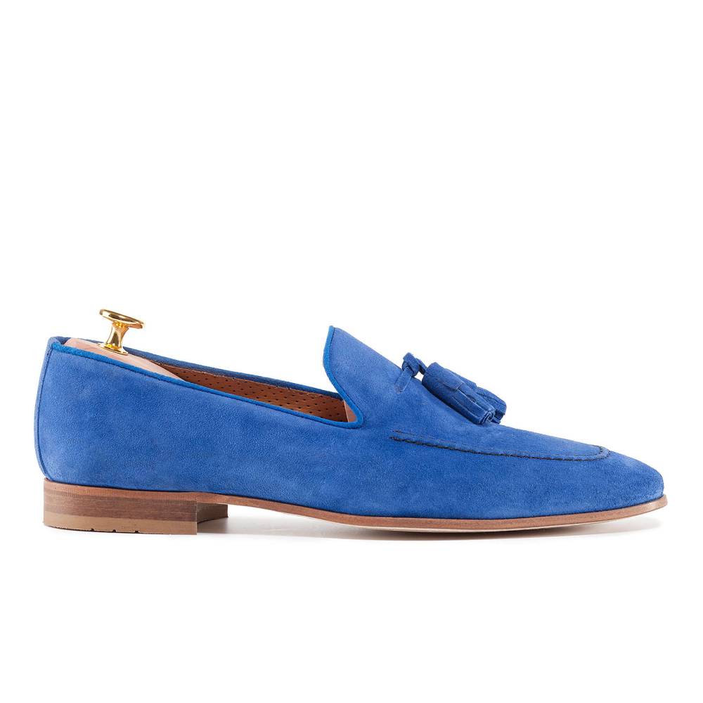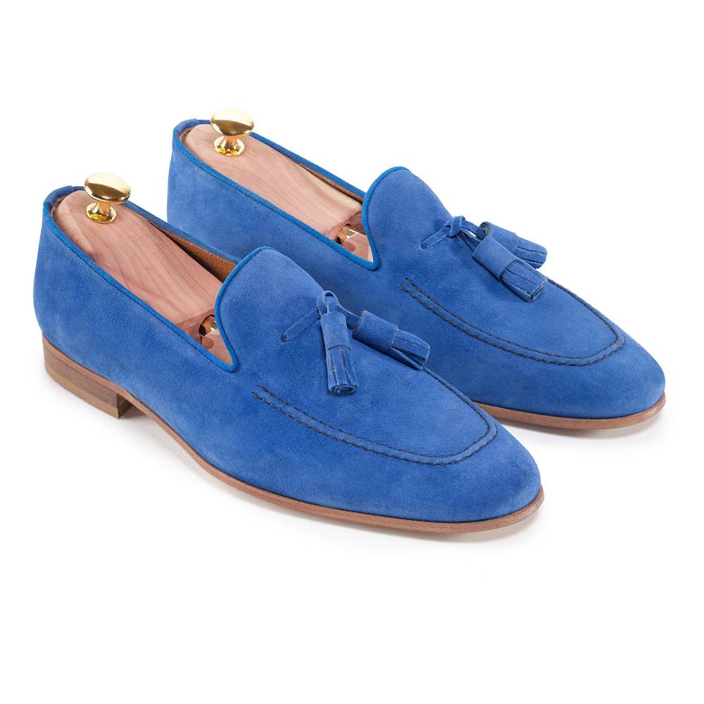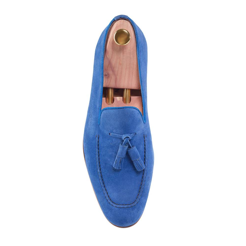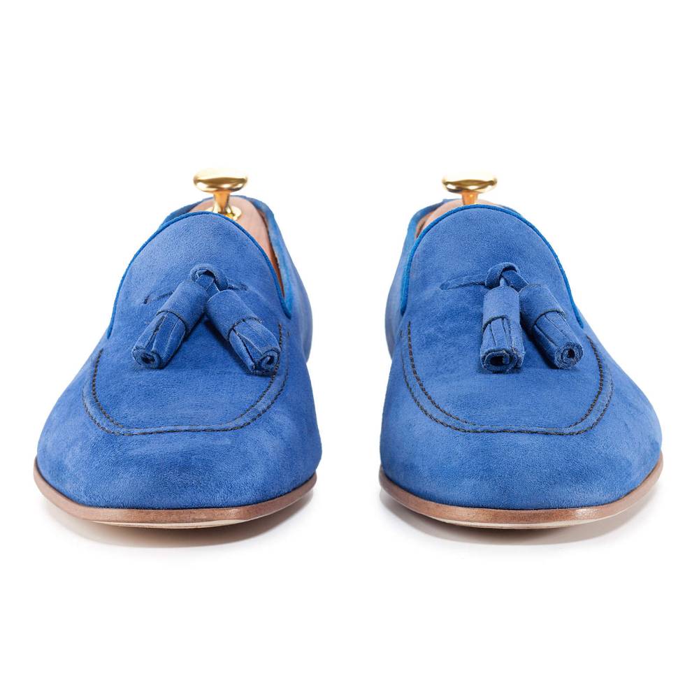 Лёгкие лоферы Paco Milan на тонкой кожаной подошве. Верх выполнен из мягкой бархатистой замши голубого цвета. На подъёме модель украшена замшевыми кисточками. Внутренняя отделка из тонкой гладкой кожи. Конструкция Blake.
