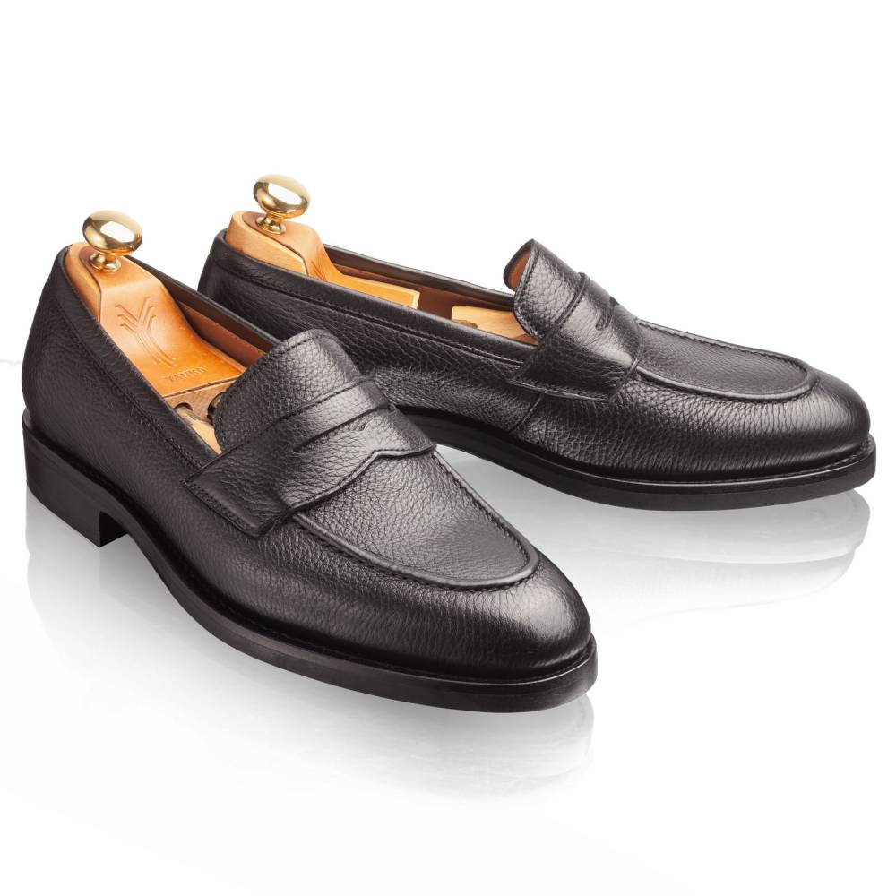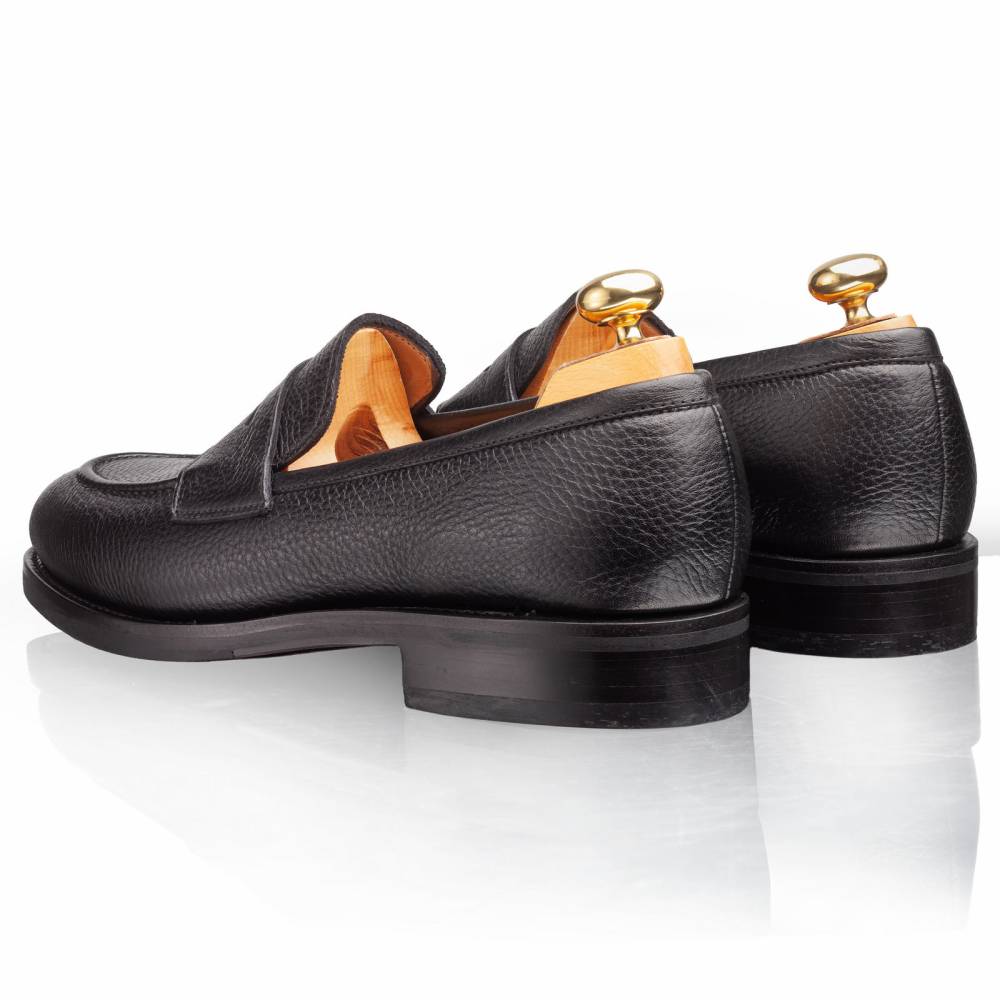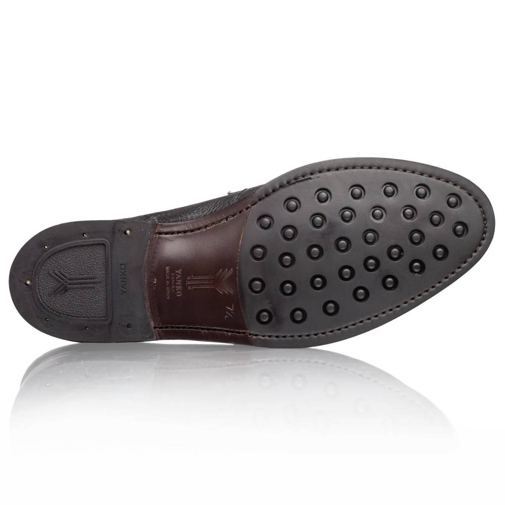 Традиционные мужские пенни-лоферы испанской фабрики Yanko. Дизайн модели удачно балансирует между строгостью и умеренным casual стилем. Верх сшит из мягкой приятной на ощупь оленьей кожи с зернистой фактурой. Подошва выполнена из кожи и резины. Такое сочетание материалов позволяет носить обувь даже в дождливую погоду, не жертвуя при этом удобством. Область пятки с внутренней стороны с шероховатой поверхностью, чтобы стопа лучше фиксировалась. Конструкция Goodyear Welted.