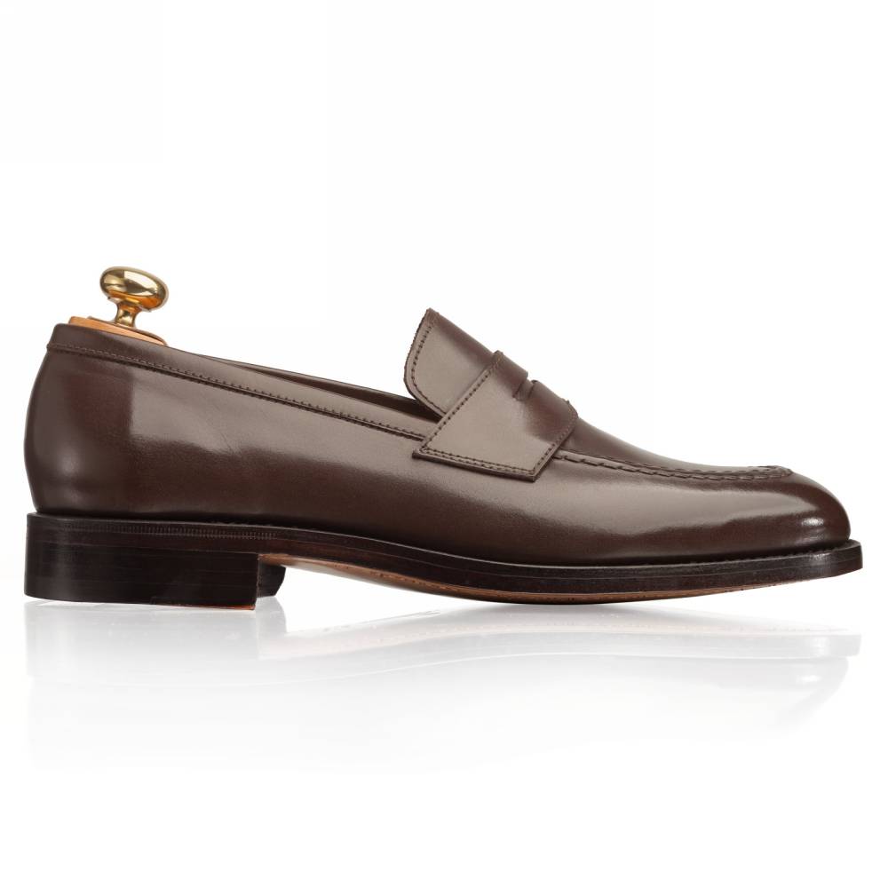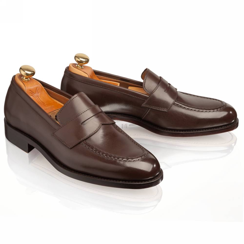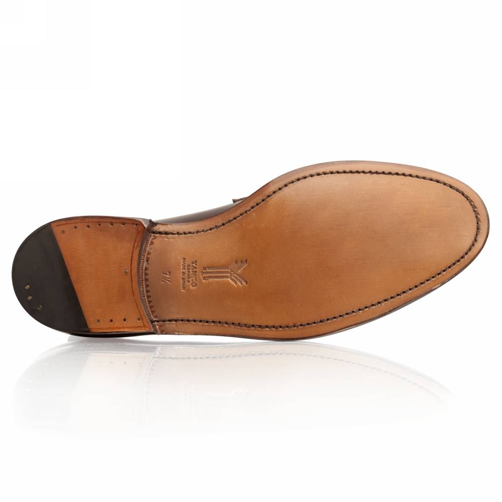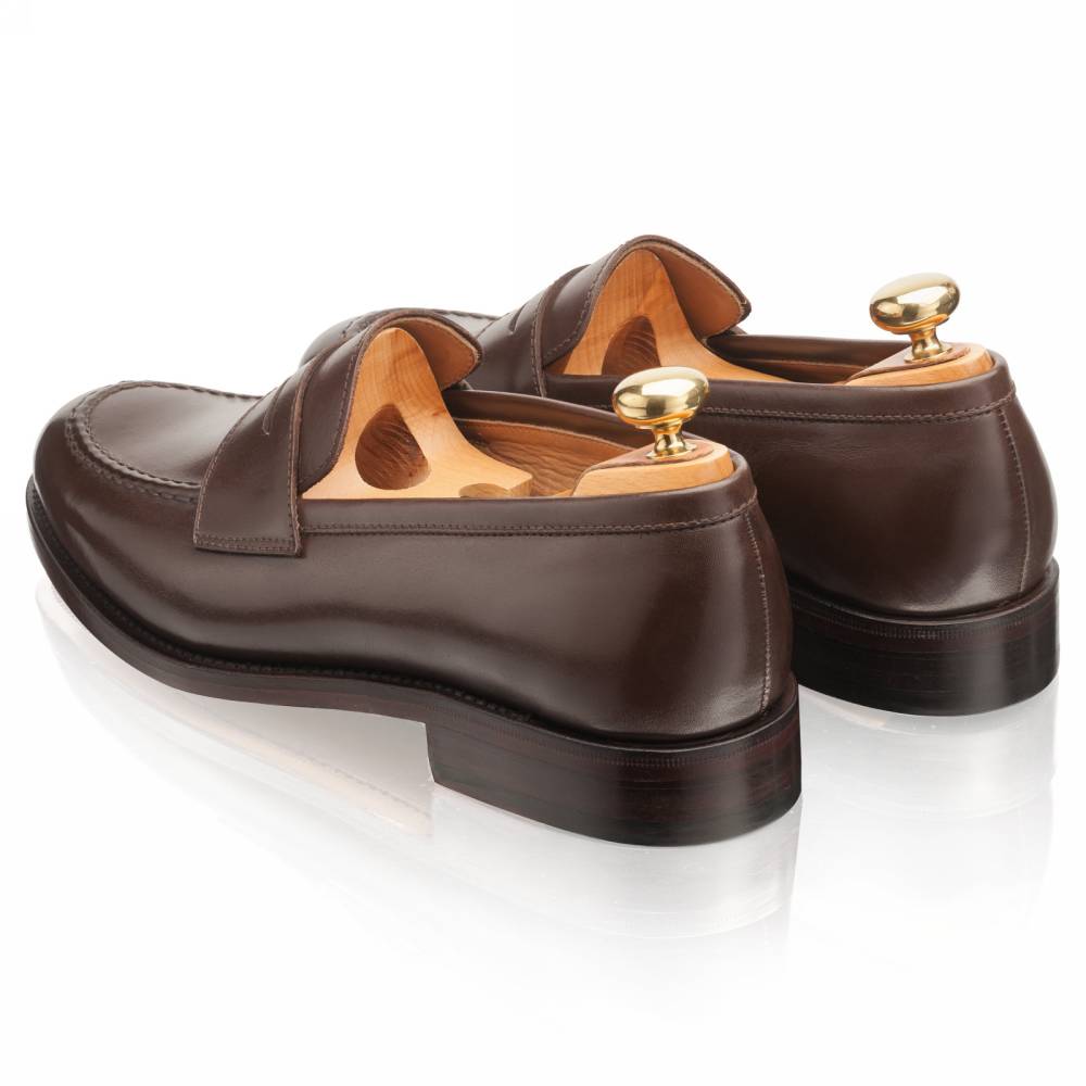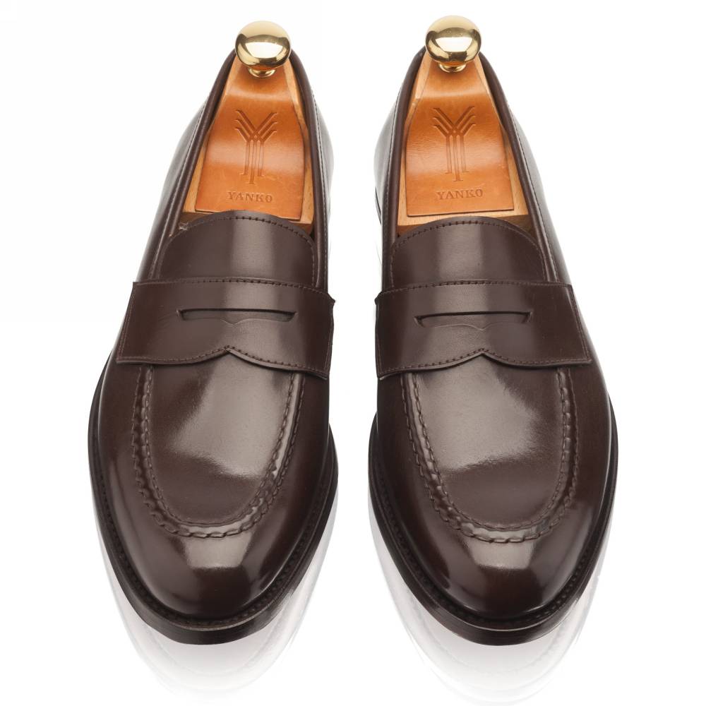 Традиционные мужские пенни-лоферы испанского бренда Yanko на кожаной подошве. Верх выполнен из гладкой телячьей кожи тёмно-коричневого цвета. Внутренняя отделка из тонкой бежевой кожи растительного дубления. Область пятки с внутренней стороны с шероховатой поверхностью, чтобы стопа лучше фиксировалась. Конструкция Goodyear Welted.