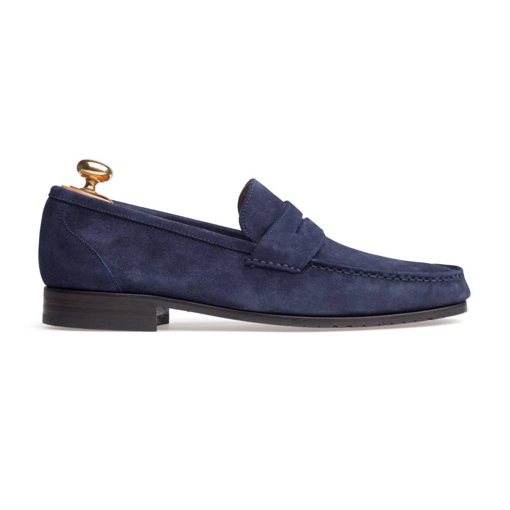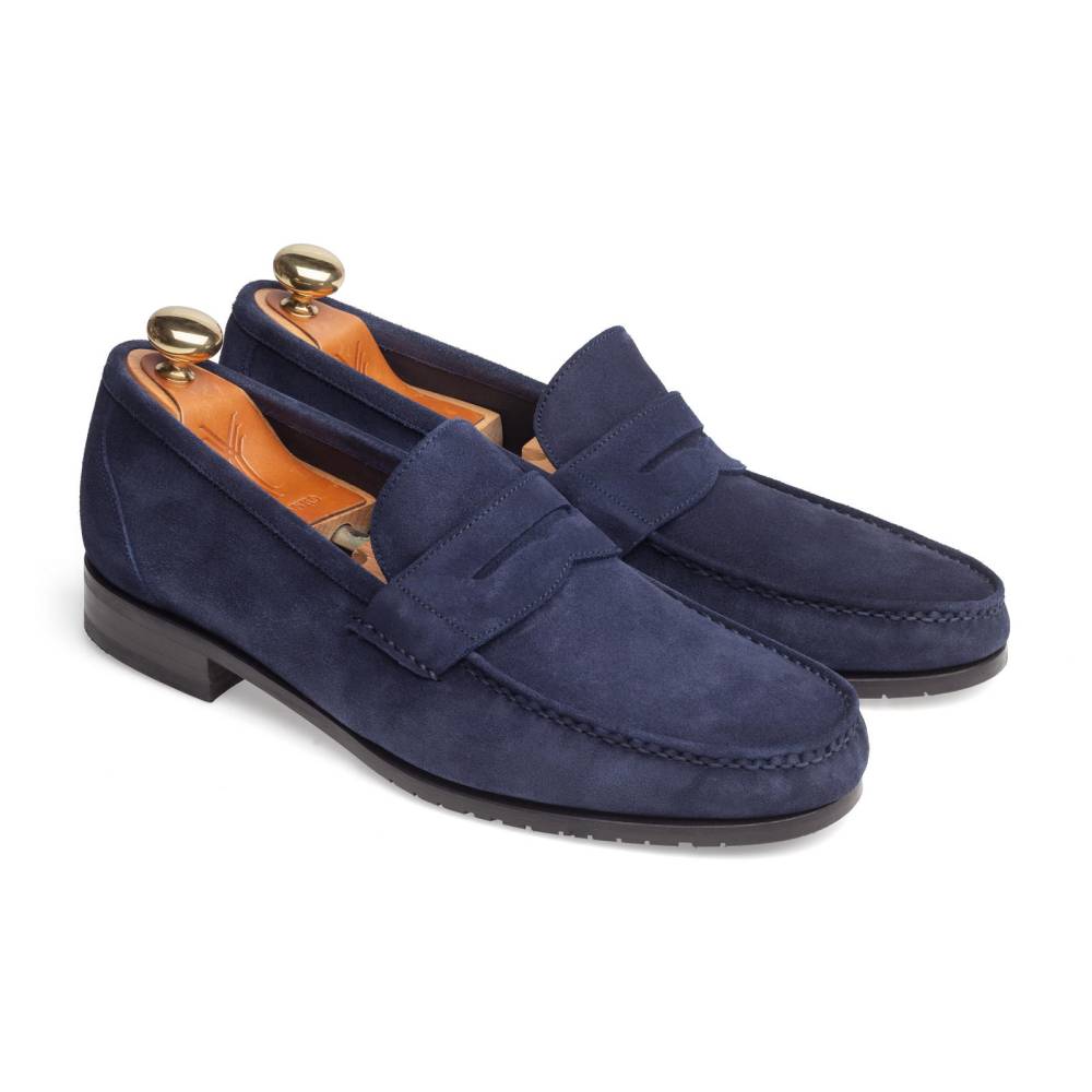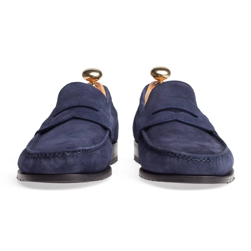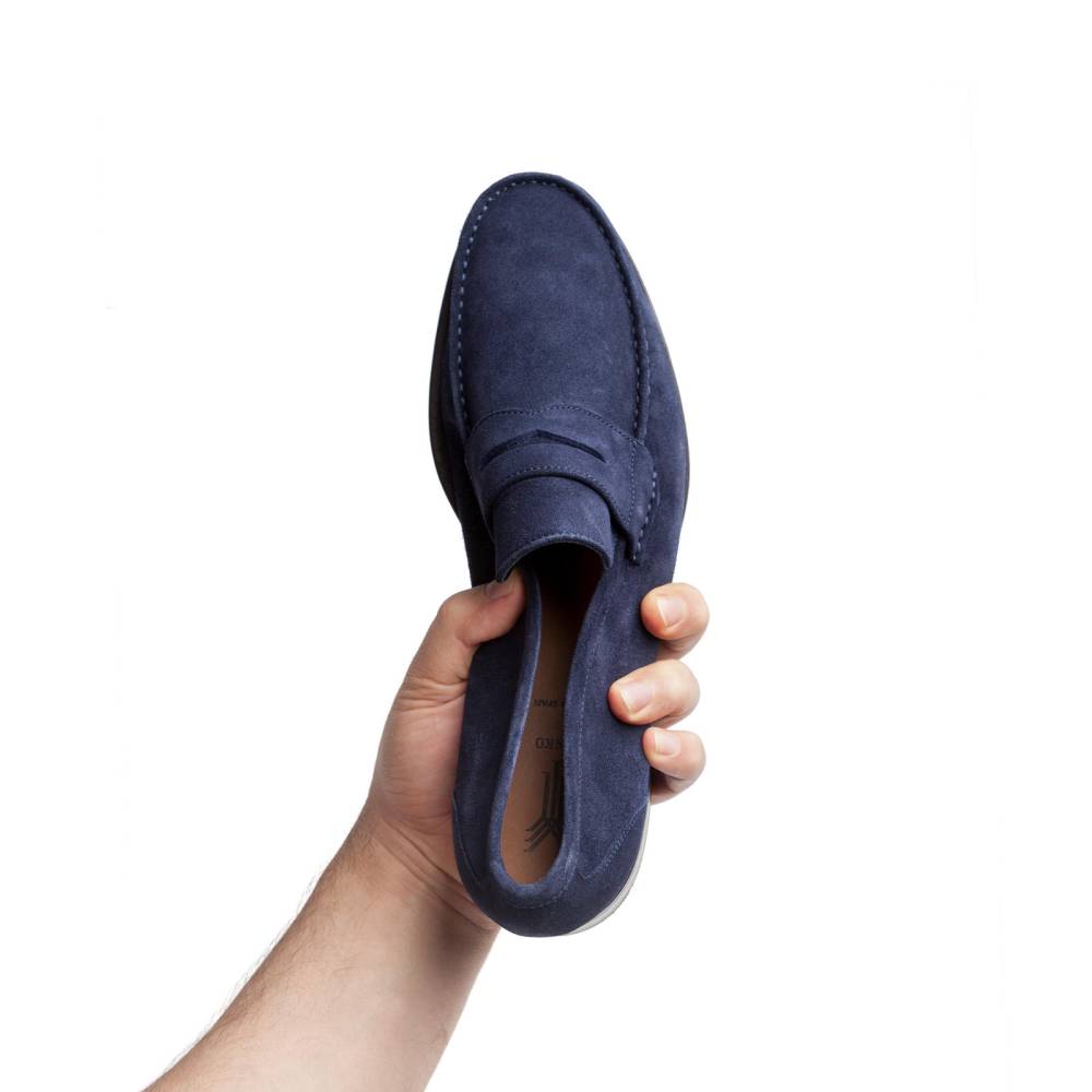 Лёгкие и удобные мужские пенни-лоферы испанского бренда Yanko из тёмно-синей замши для жаркой погоды. Летняя обувь для отдыха и прогулок должна особенно хорошо «дышать» и быть как можно легче. Поэтому данная модель по заказу Checkroom была изготовлена в облегчённой конструкции Blake без подкладки. Эти особенности делают её гибче и позволяют лучше облегать стопу. Для подошвы специально была выбрана тонкая гибкая резина, с расчётом на то, что она защитит от проникновения влаги снизу в дождливую погоду.