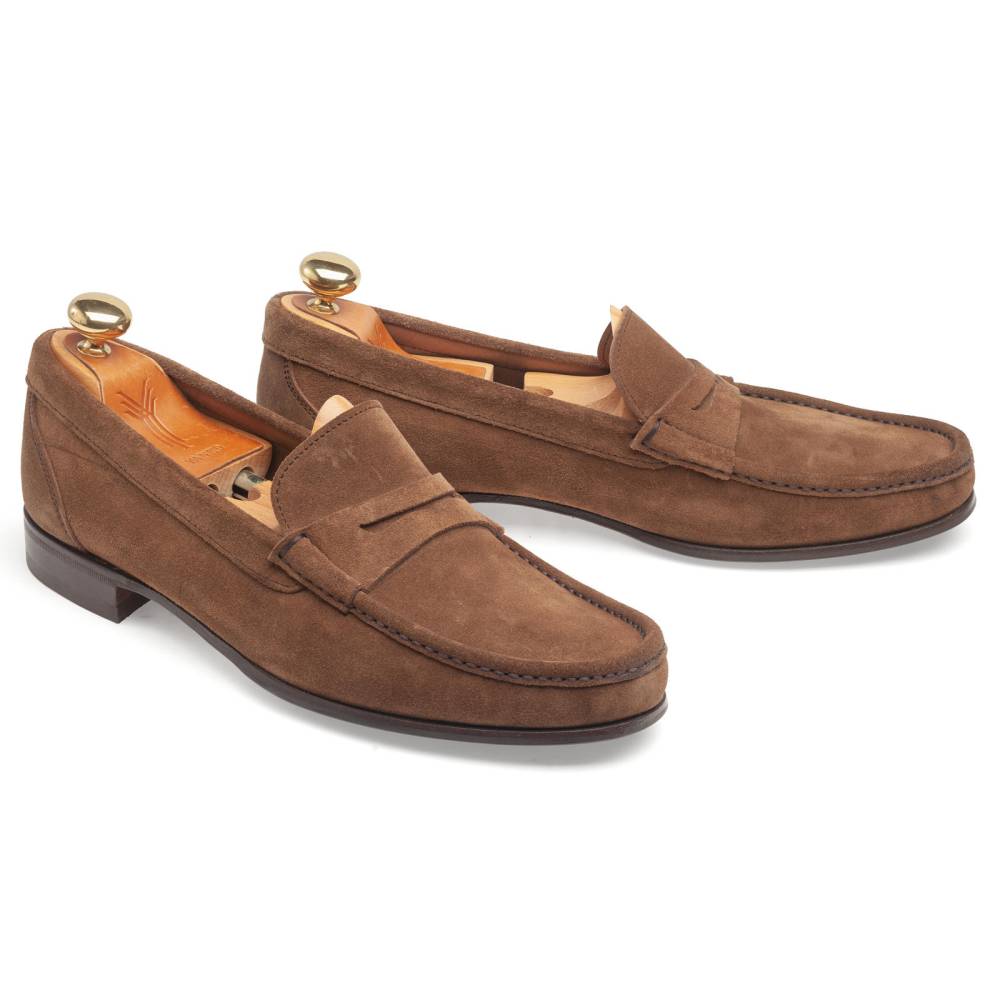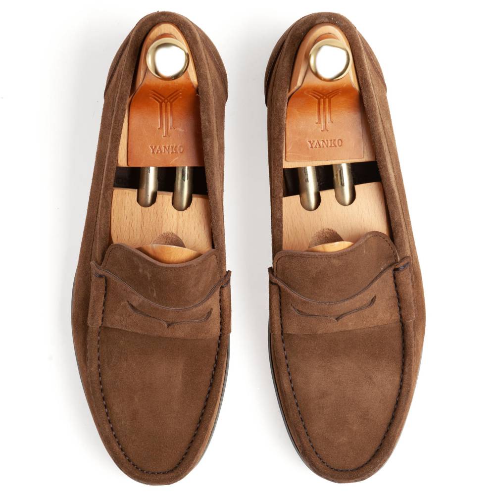 Лёгкие и удобные мужские пенни-лоферы испанского бренда Yanko из коричневой вывортной кожи без подкладки для жаркой погоды. Летняя обувь для отдыха и прогулок должна особенно хорошо «дышать» и быть как можно легче. Поэтому данная модель по заказу Checkroom была изготовлена в облегчённой конструкции Blake. Эти особенности делают её гибче и позволяют лучше облегать стопу. Для подошвы специально была выбрана тонкая кожа и резиновый накат, с расчётом на то, что обувь можно будет носить и в дождливую погоду.