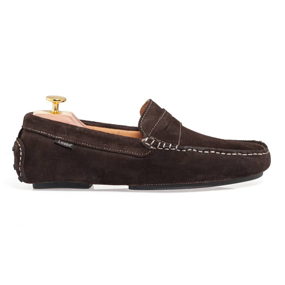 Мокасины Loake Herbert из коллекции L1 на профилированной подошве из резины. Верх выполнен из мягкой бархатистой замши тёмно-коричневого цвета. Внутренняя отделка из гладкой кожи. Стелька из кожи с амортизирующим слоем.