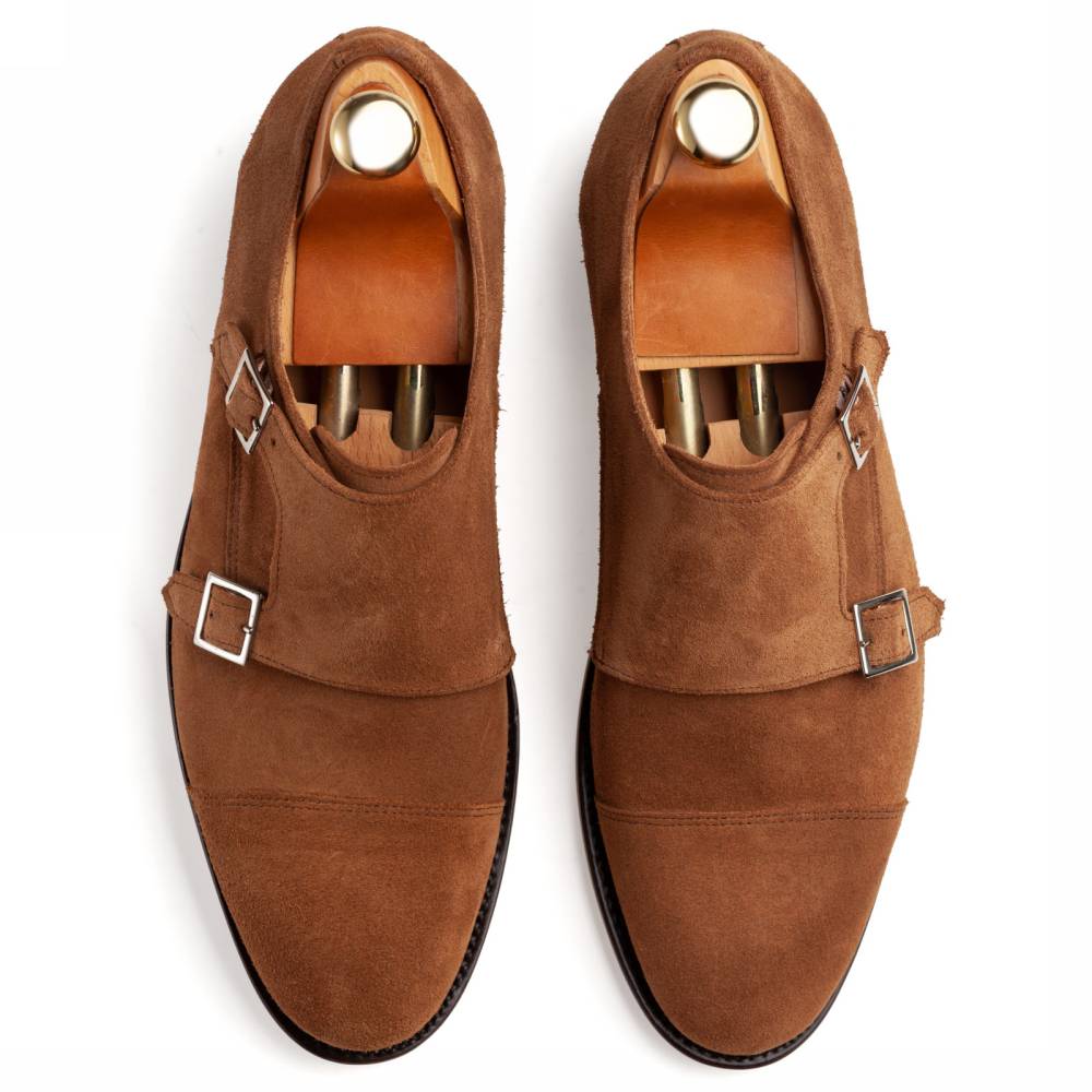 Коричневые замшевые монки Artisan на кожанной подошве. Для регулировки высоты подъёма на паре присутствуют два небольших ремешка. Подкладка и цельная стелька, сделанные из кожи, обеспечат ногам комфорт и удобство в тёплые летние дни. Конструкция Goodyear welted.