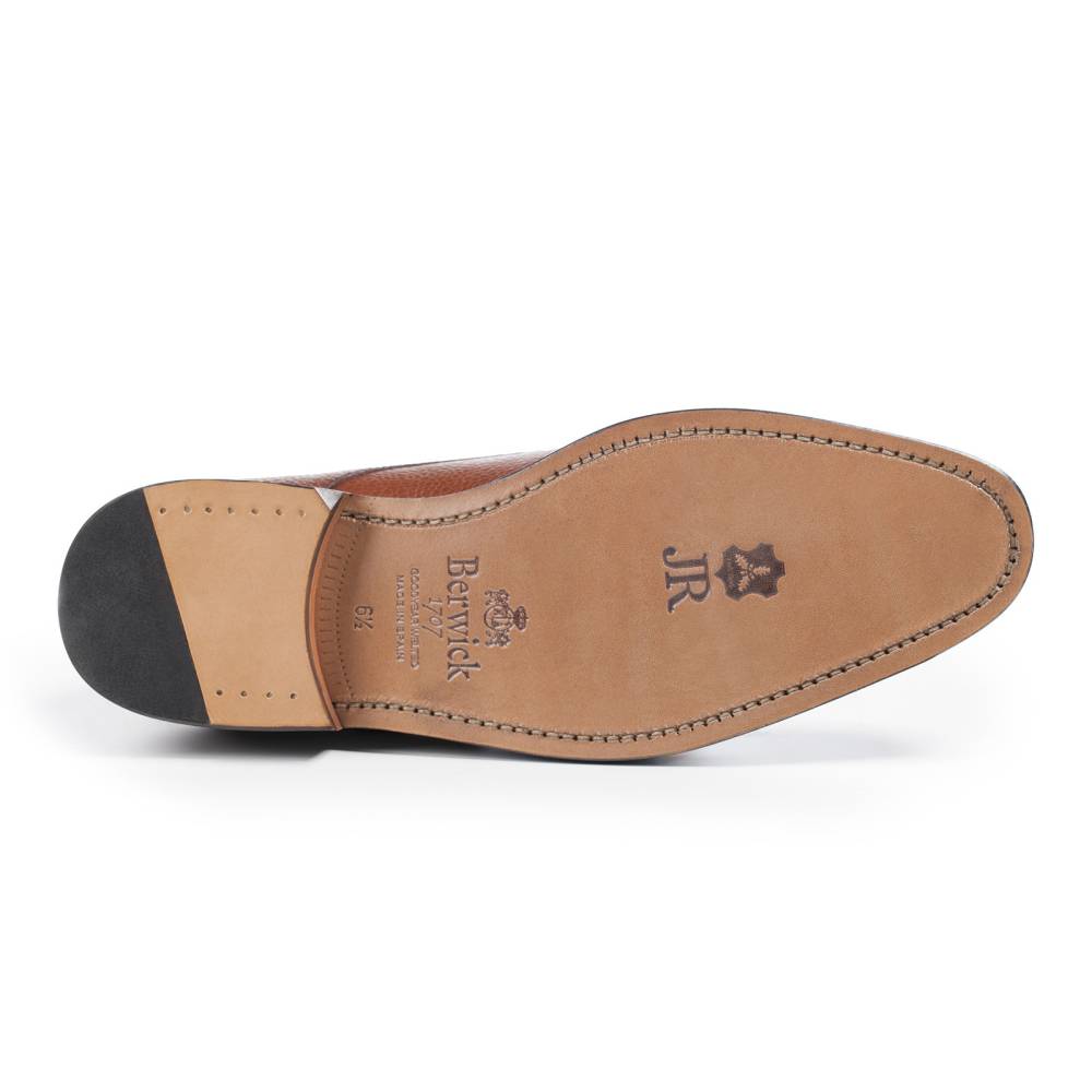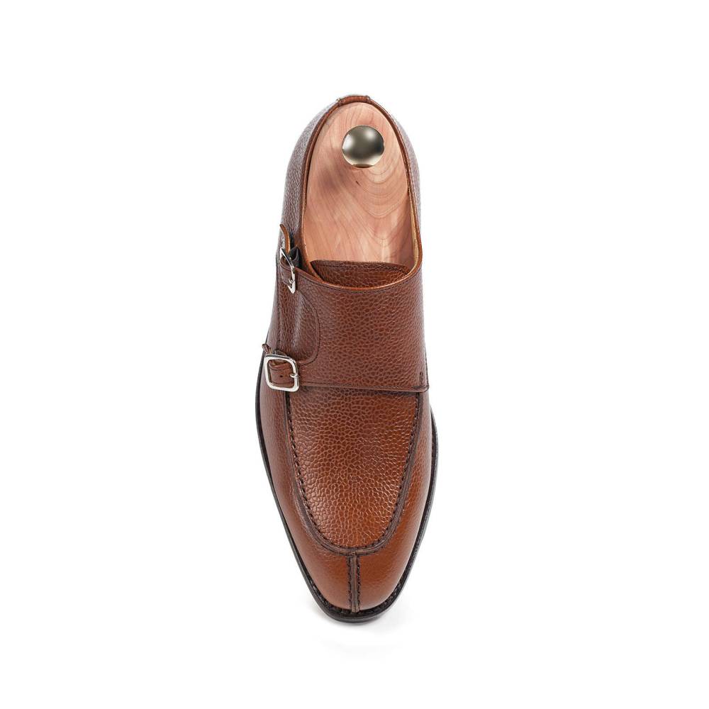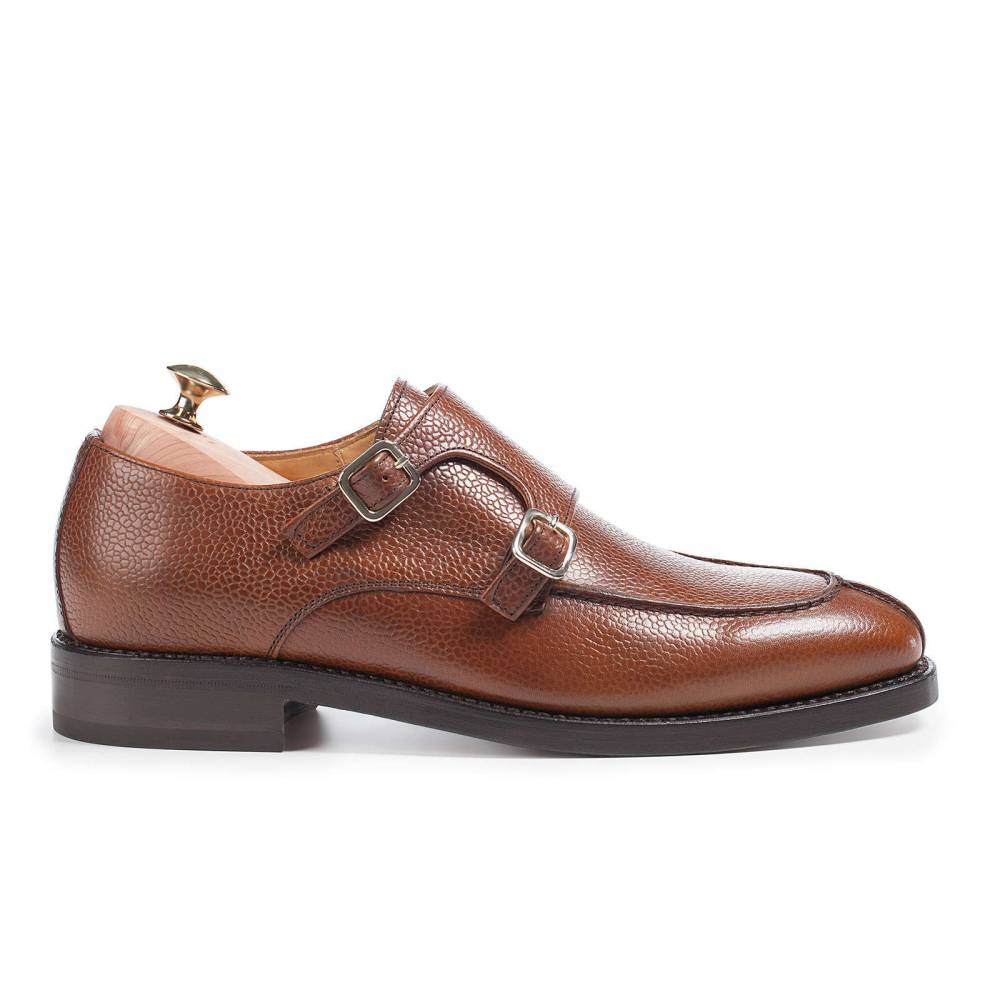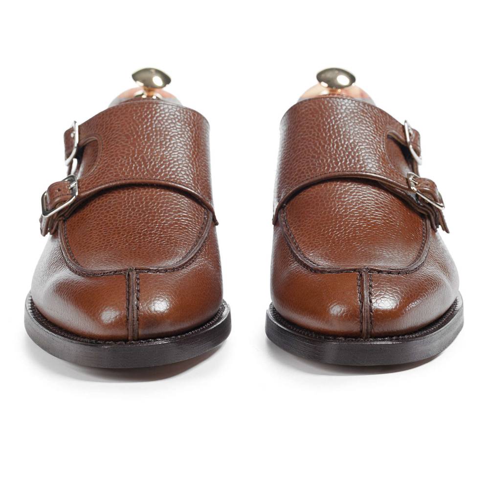 Мужские туфли монки Berwick из коллекции Premium Grade на двухслойной кожаной подошве от знаменитой немецкой фабрики Joh. Rendenbach. Верх выполнен из плотной телячьей кожи светло-коричневого цвета с зернистой текстурой, которая придает модели особый благородный вид. Туфли застегиваются на два ремешка с пряжками из полированного металла серебристого цвета. Конструкция Goodyear Welted.