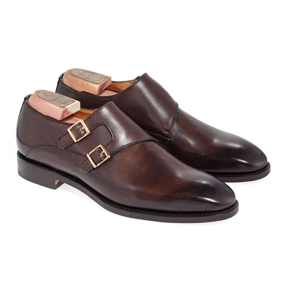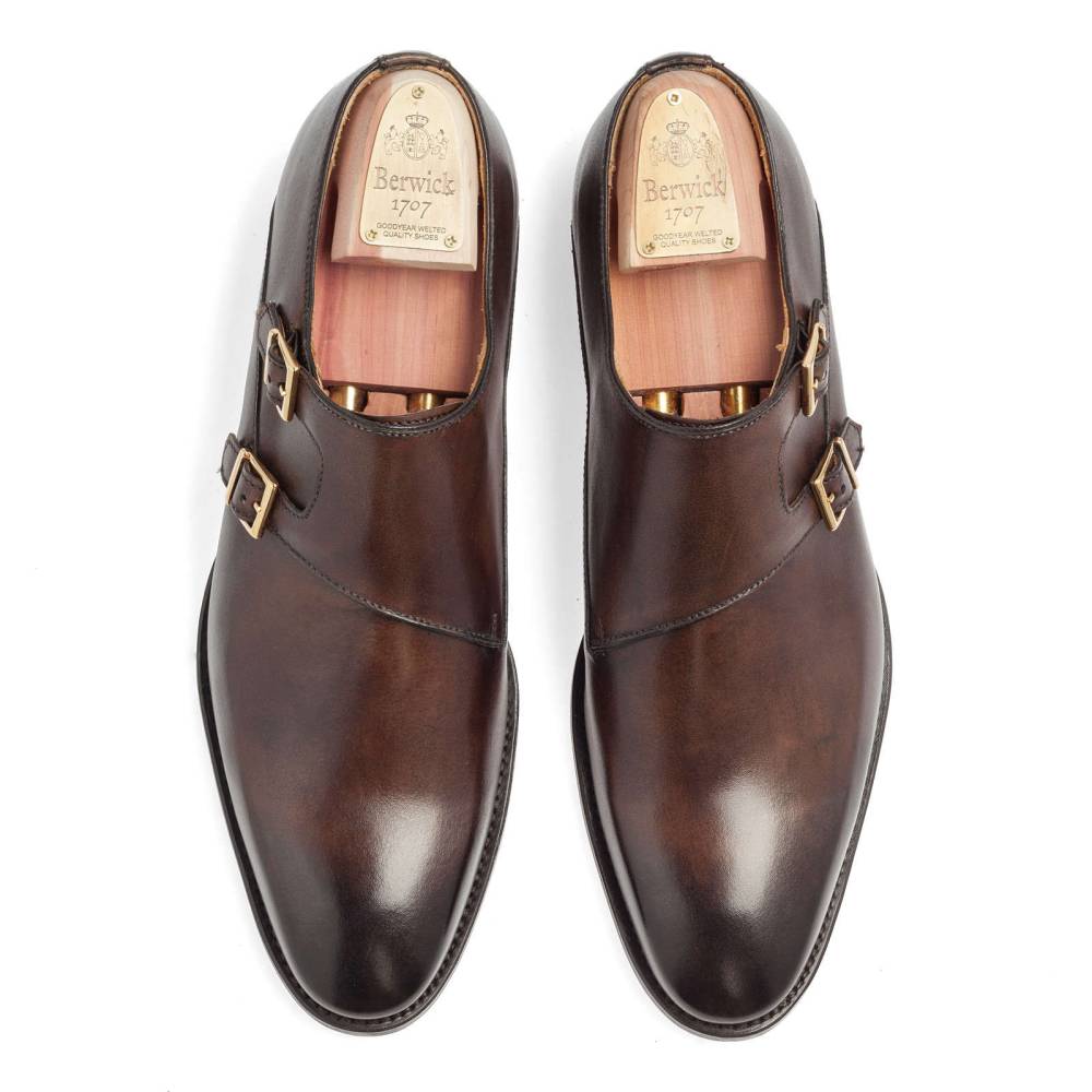 Элегантные тёмно-коричневые туфли монки Berwick 1707 из коллекции Premium Grade. На данную пару установлена высококачественная кожаная подошва от знаменитой немецкой кожевенной мастерской Joh. Rendenbach. Верх выполнен из телячьей кожи. Особенностью модели является ручная окраска, которая создает неповторимый внешний вид кожи с неравномерной игрой цвета и градиентным затемнением на мысе. Туфли имеют оригинальные косые ремешки с пряжками золотистого цвета. Внутренняя отделка из тонкой кожи горчичного оттенка. Конструкция Goodyear Welted.