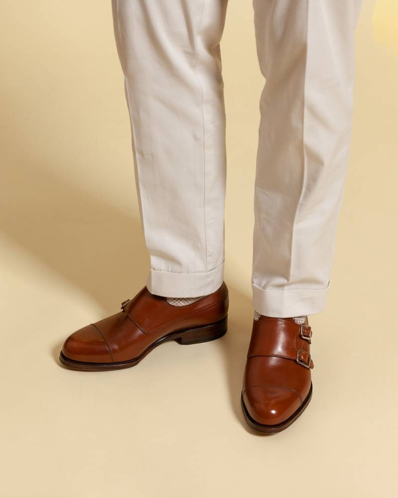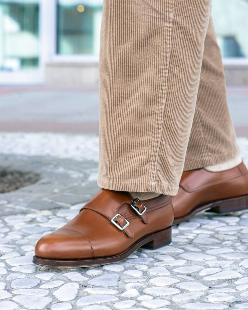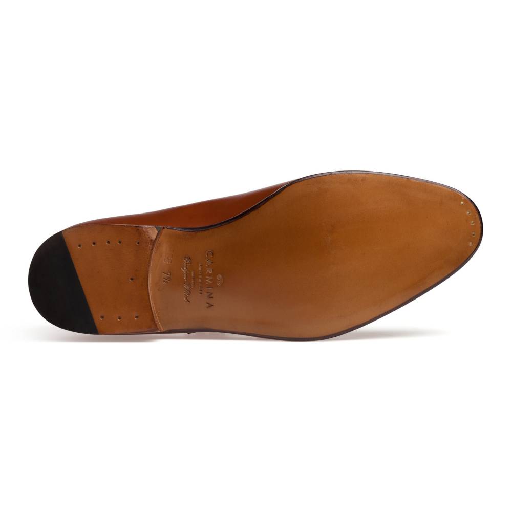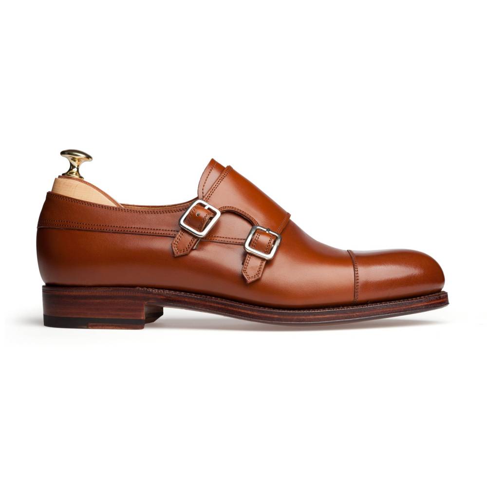 Оригинальные туфли-монки Carmina благородного коньячного цвета. Верх выполнен из высококачественной телячьей кожи. Отличительной особенностью данной модели являются два параллельных ремешка, дополненных пряжками из полированного металла. Кожаная подошва. Конструкция Goodyear Welted.