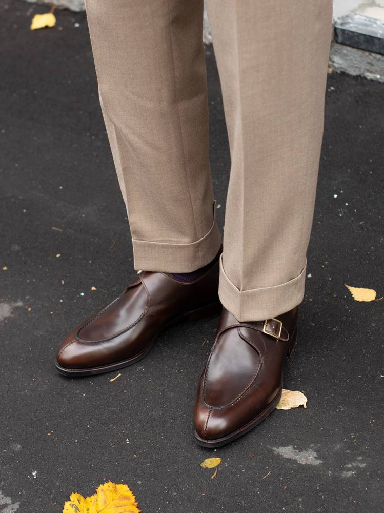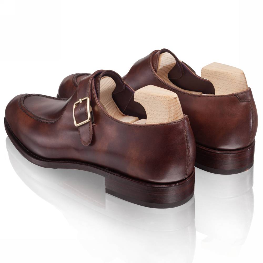 Модель сшита на колодке Queens со стандартной полнотой (EE). Данная колодка имеет элегантный вытянутый мыс, но довольно большой объём в носочно-пучковой зоне. Поэтому такие монки в этой колодке могут подойти для широкой стопы.