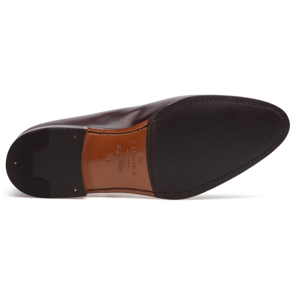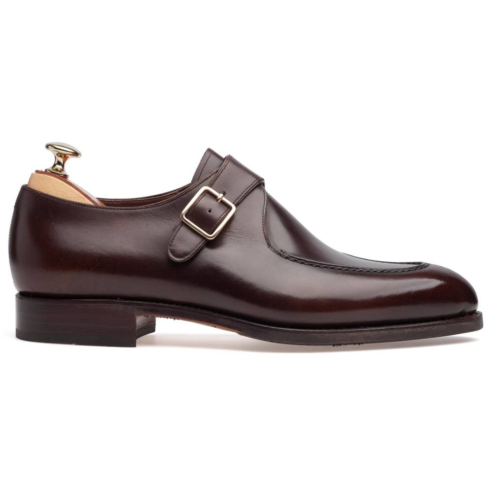 Повседневные монки Carmina Shoemaker на комбинированной подошве. Модель представляет собой монки с одной пряжкой в норвежском стиле с тремя сшитыми элементами в передней части (split toe single strap monk). Верх изготовлен из высококачественной гладкой телячьей кожи demascable, которая отличается неповторимыми переходами цвета от тёмно- к светло-коричневому. Чтобы достичь такого результата, мастера на фабрике вручную тонируют каждую пару. Конструкция Goodyear Welted.