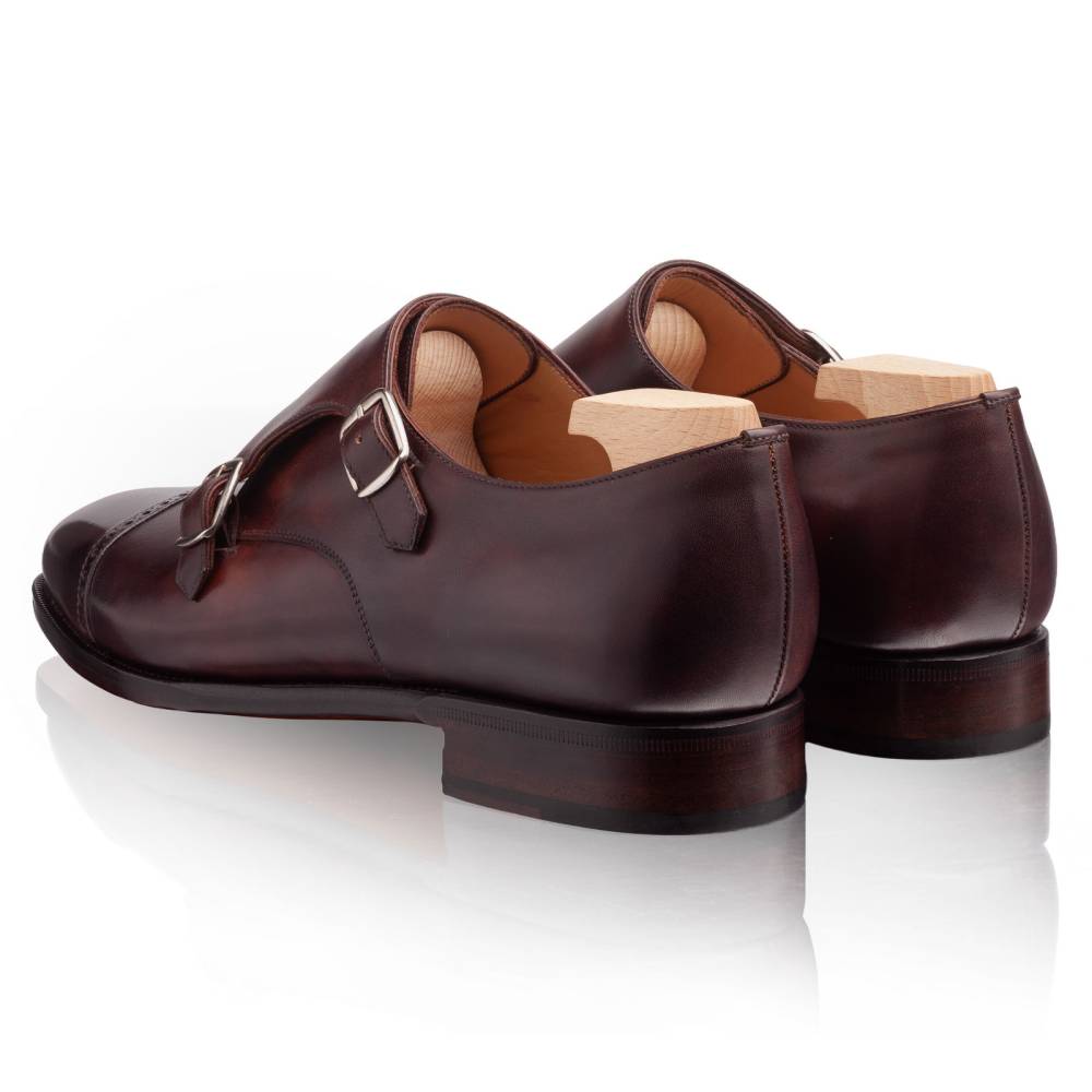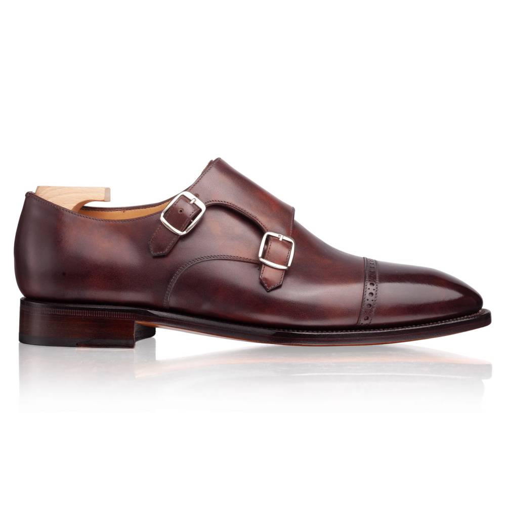 Эффектные монки с двумя пряжками (double monk) из премиальной линейки Artista. Верх из высококачественной телячьей кожи «Museum Calf». Особенностью кожи является характерная игра цвета, которая схожа с узорами на мраморе. Отрезной мыс дополнен перфорацией по периметру шва (punched cap toe). Этот ненавязчивый декор и цвет делают силуэт менее формальным (semi-formal). Внутренняя отделка из тонкой кожи растительного дубления. Кожаная подошва с закрытым швом, делает пару более утончённой и целостной. Конструкция Goodyear Welted.