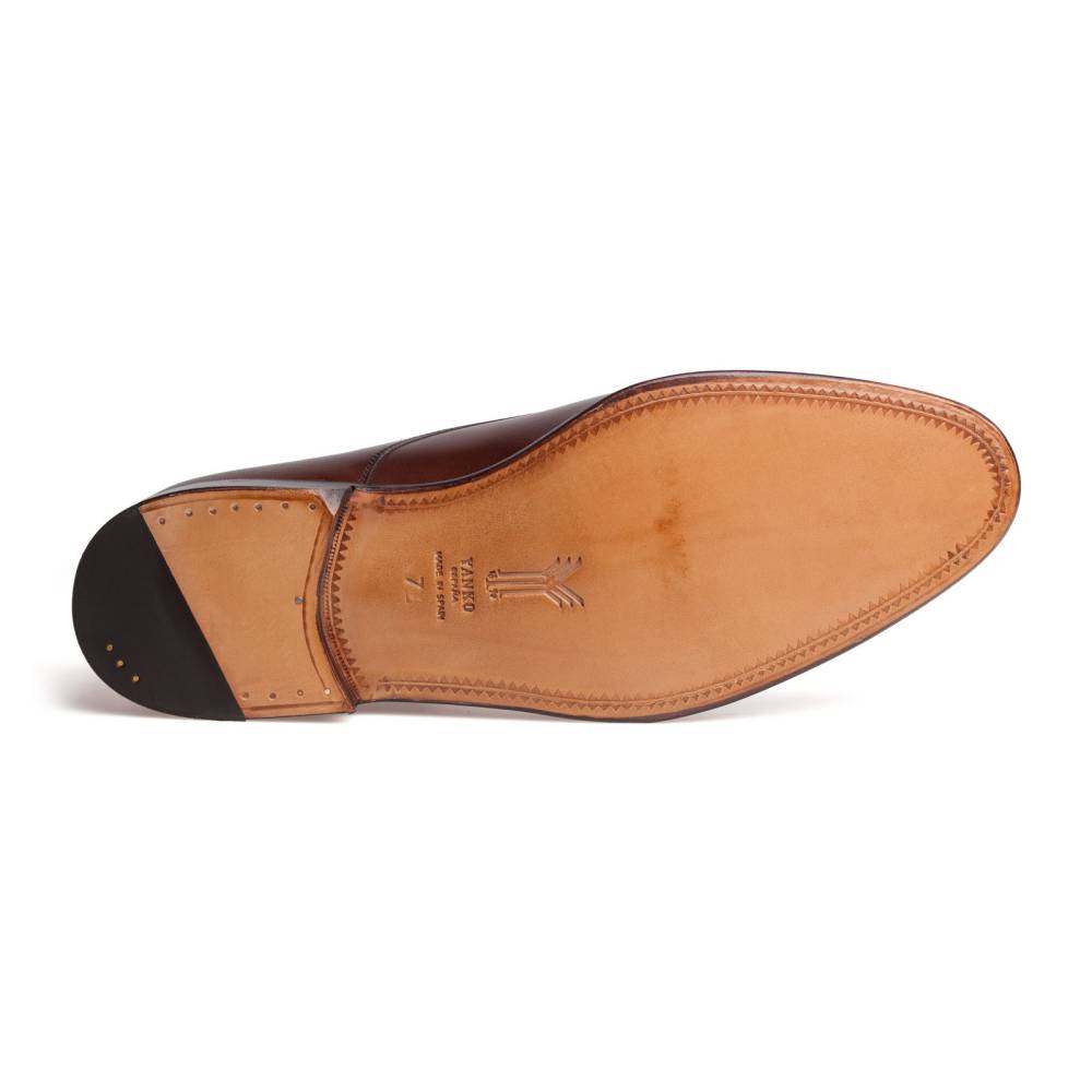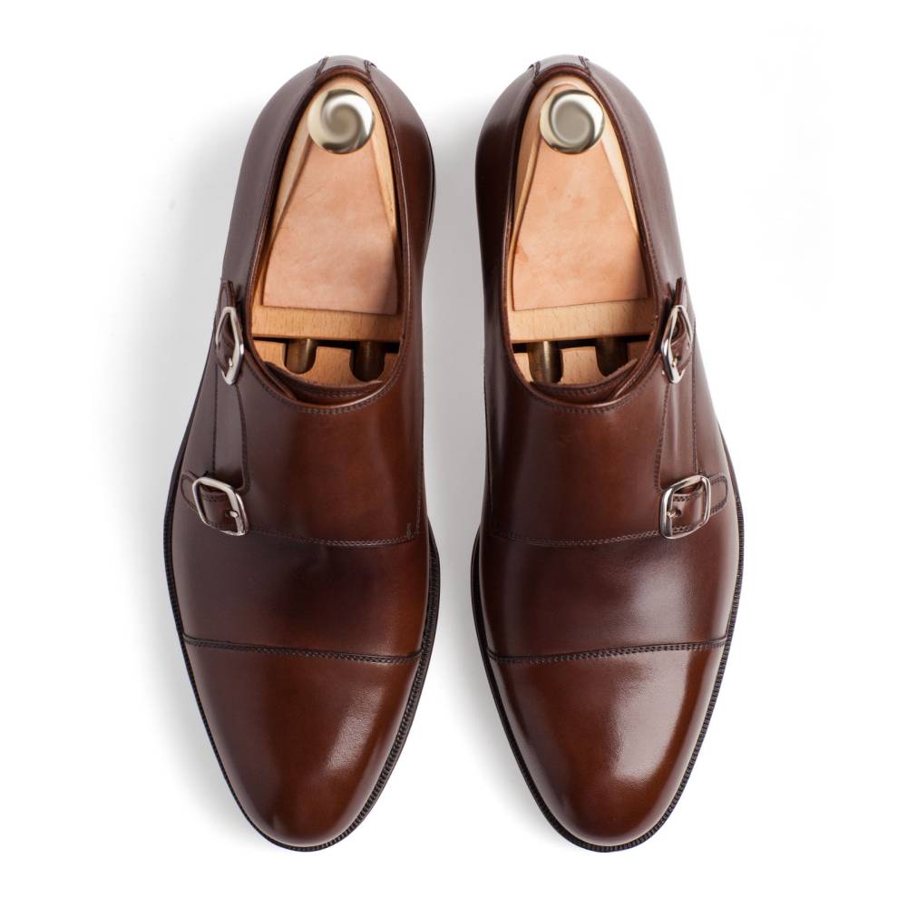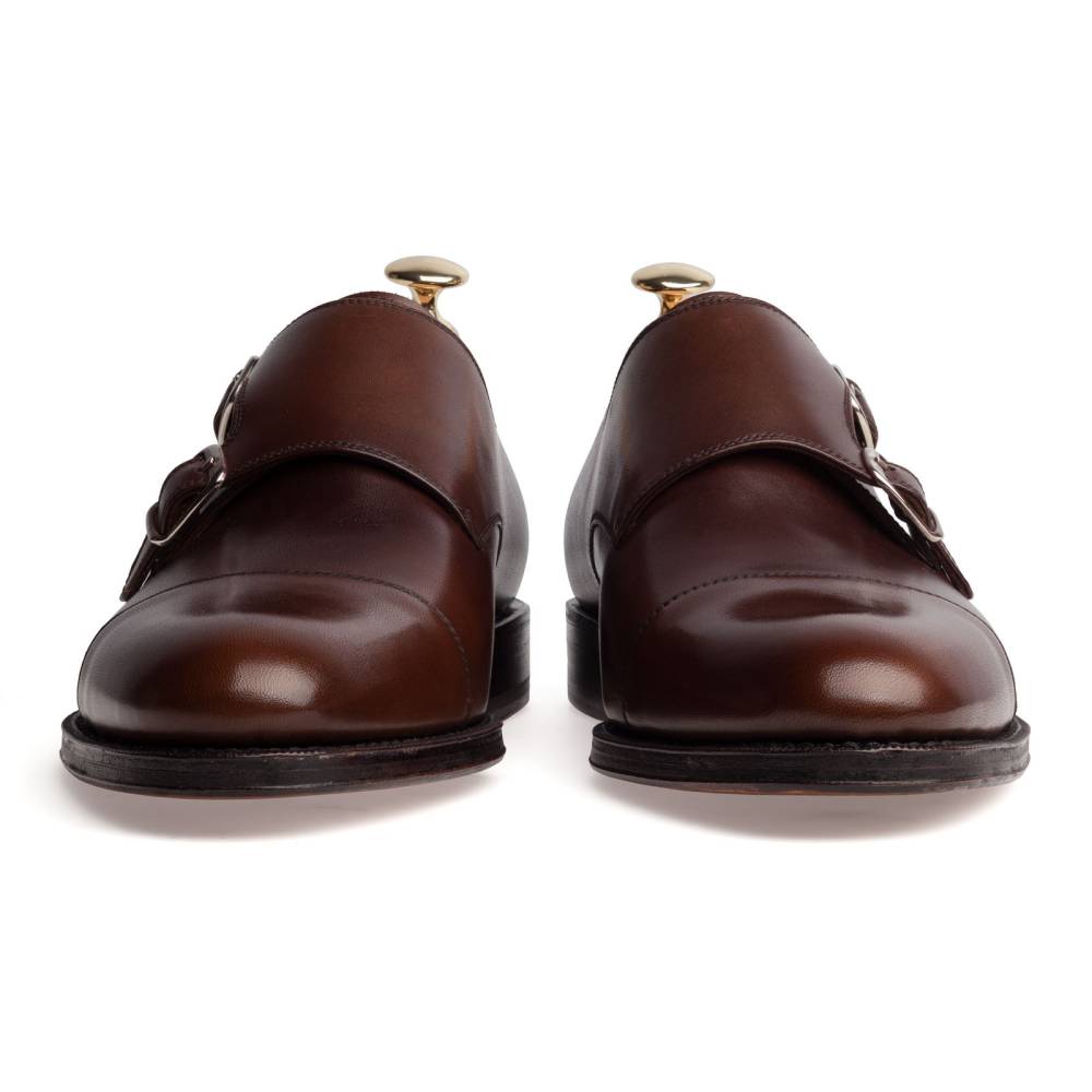 Элегантные мужские туфли монки от испанского бренда Yanko. Верх выполнен из высококачественной телячьей кожи коричневого цвета. Кожаная подошва. Модель имеет два характерных ремешка с пряжками из серебристого металла. Модель сшита на колодке 962 с консервативным сдержанным силуэтом и закругленным мысом. Полнота средняя (F). Конструкция Goodyear Welted.