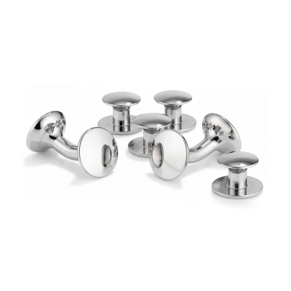 Эксклюзивный вечерний набор от британской мануфактуры Codis Maya — результат кропотливого ручного труда и воплощение лучших традиций английского ремесленного мастерства. Комплект из запонок и четырех пуговиц для сорочки изготовлен из цельной латуни, выточен на токарном станке и вручную отполирован до зеркального блеска. Основание дополнено износостойким родиевым покрытием, чей благородный холодный блеск подчеркивает чистоту линий и архитектурную форму изделий. Лаконичный и строгий дизайн набора делает его универсальным аксессуаром, идеально дополняющим торжественный образ в стиле Black Tie.