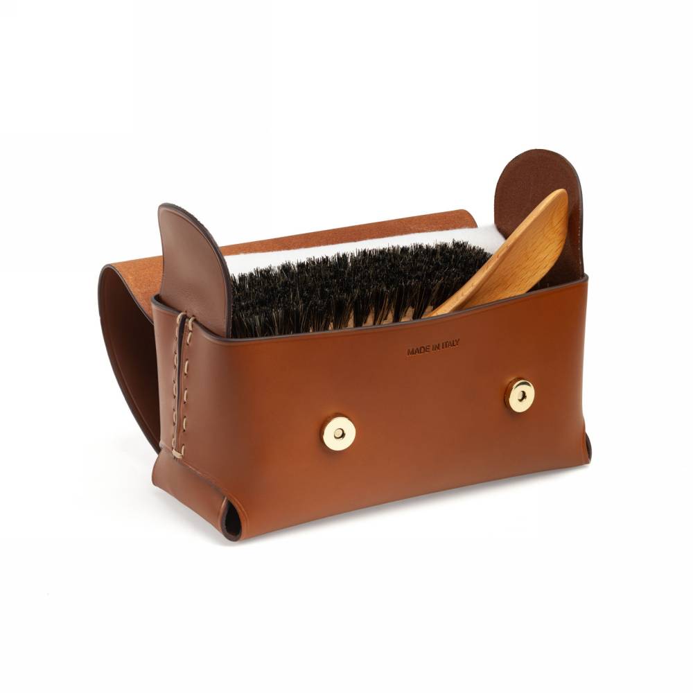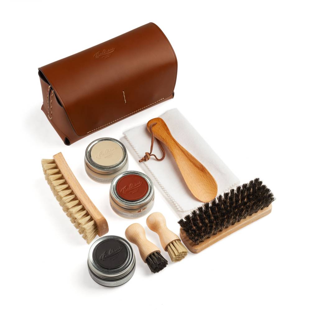 Компактный набор косметики для ухода за обувью, который станет отличным подарком для ценителя хорошей обуви.