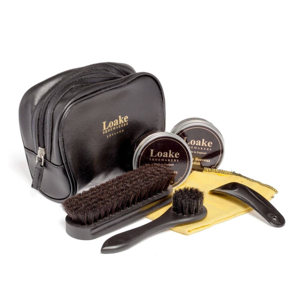 Компактный набор средств по уходу за обувью Loake. Набор станет прекрасным подарком ценителю хорошей обуви и отлично дополнит интерьер прихожей или гардеробной комнаты.