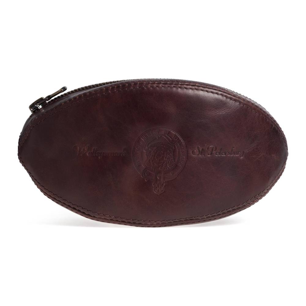 Практичный несессер из телячьей кожи тёмно-коричневого цвета выполнен в виде мяча для регби. При желании его действительно можно использовать в качестве спортивного снаряда. Оригинальный аксессуар посвящён Александру Оболенскому, легендарному регбисту российского происхождения, выступавшему за национальную сборную Англии. Подкладка выполнены из хлопковой ткани. В несессер вмещается все самое необходимое: бритвенные принадлежности, зубная щётка, мыло и туалетная вода. Несессер вложен в картонную коробку, где также присутвтет историческая справка и описание товара.