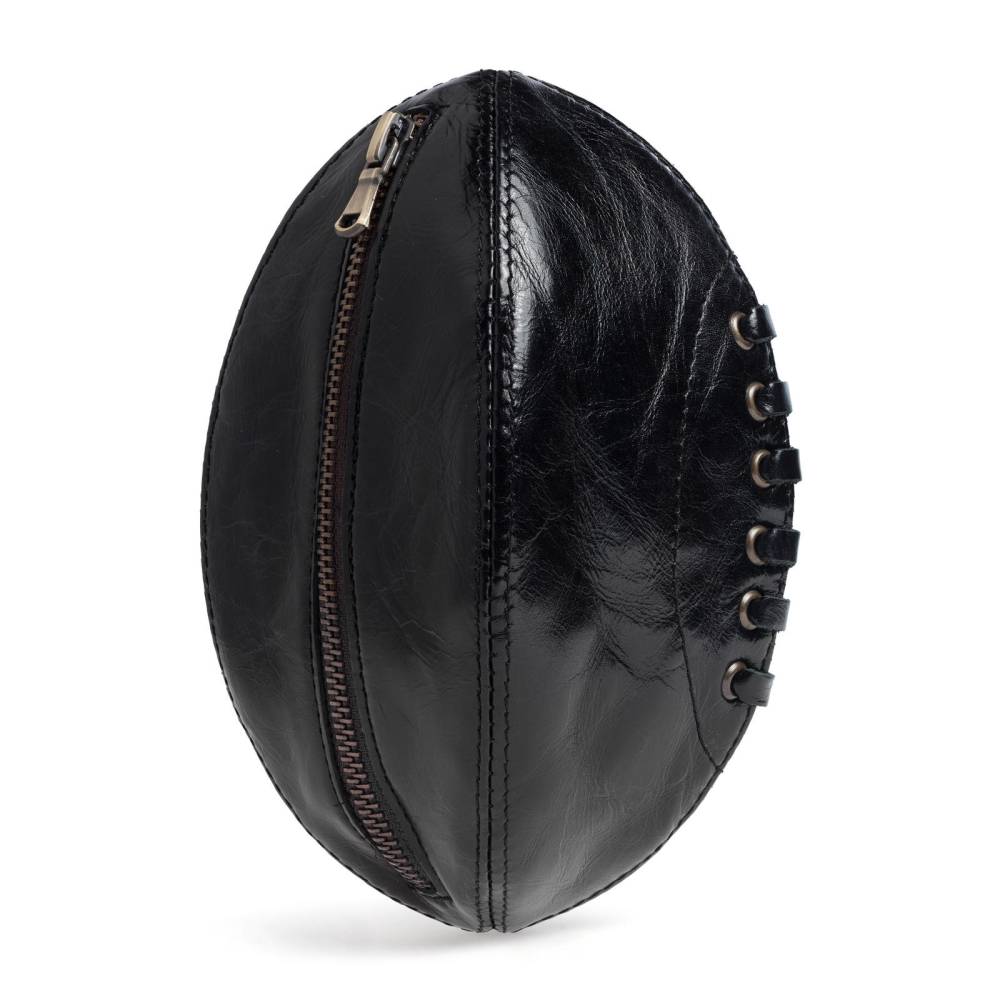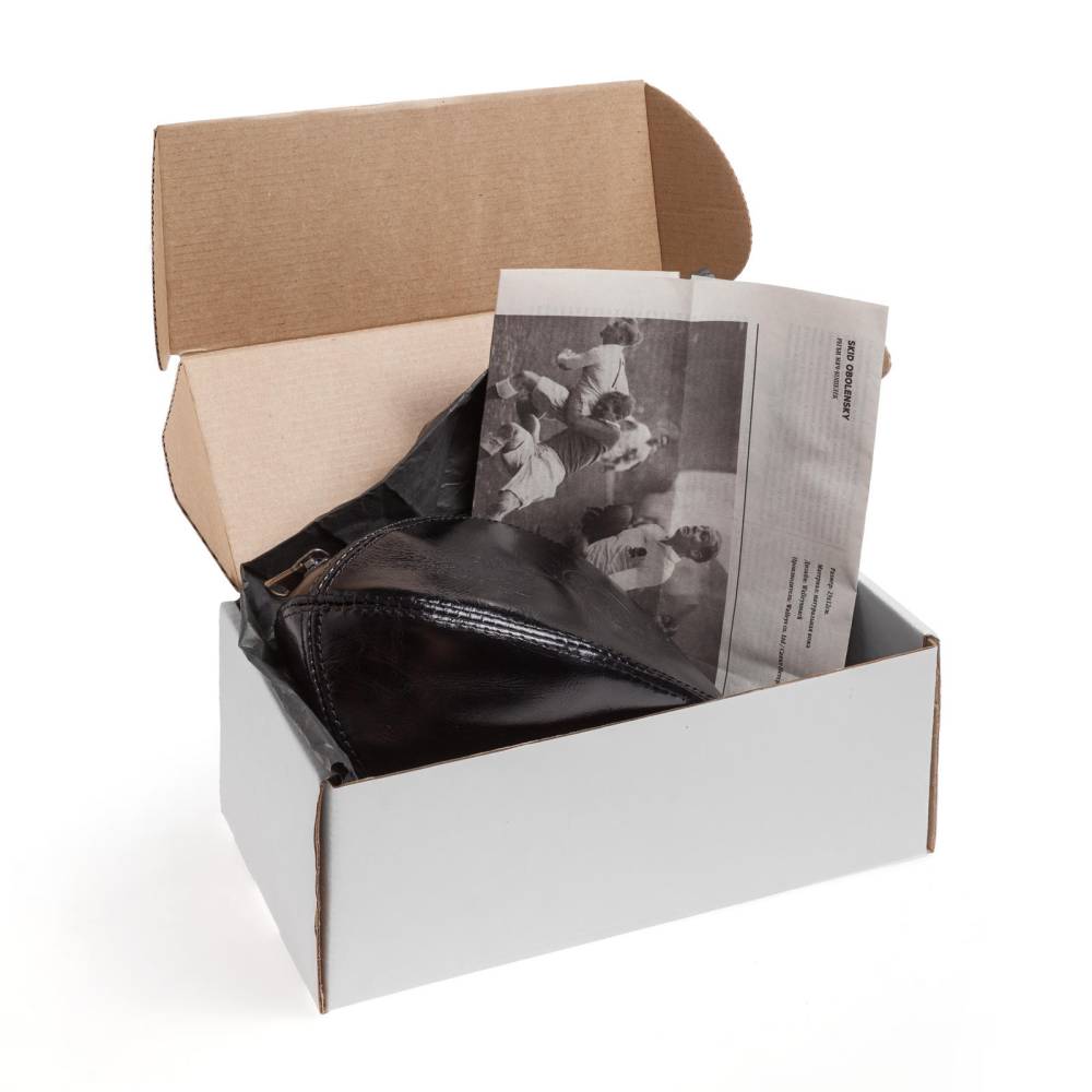 Практичный несессер из телячьей кожи чёрного цвета выполнен в виде мяча для регби. При желании его действительно можно использовать в качестве спортивного снаряда. Оригинальный аксессуар посвящён Александру Оболенскому, легендарному регбисту российского происхождения, выступавшему за национальную сборную Англии. Подкладка выполнены из хлопковой ткани. В несессер вмещается все самое необходимое: бритвенные принадлежности, зубная щётка, мыло и туалетная вода. Несессер вложен в картонную коробку, где также присутвтет историческая справка и описание товара.
