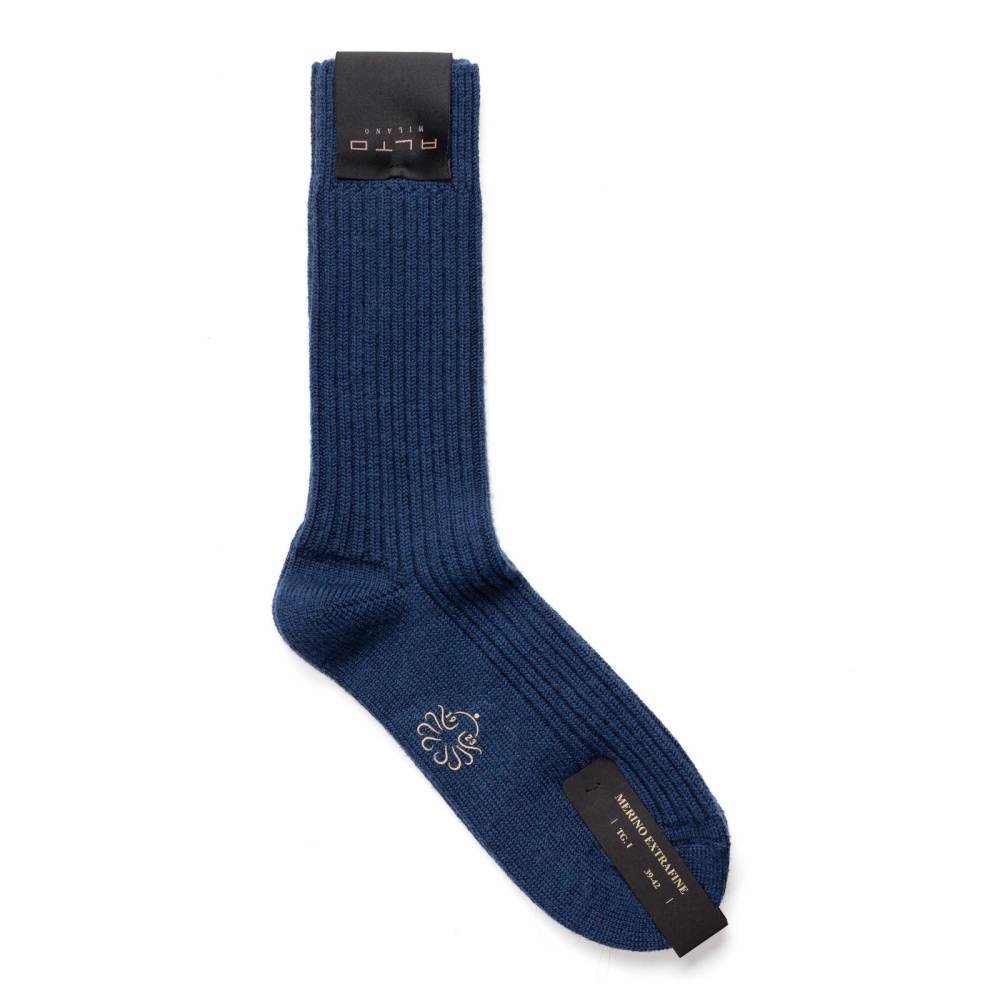 Тёплые объёмные носки из осенне-зимней коллекции итальянского бренда Alto Milano. Однотонная модель с традиционной ребристой фактурой отлично подойдёт для повседневной зимней обуви и дополнит casual гардероб в прохладное время года. Носки связаны из толстой мериносовой пряжи с добавлением полиамида и эластана для большей прочности и комфорта.
