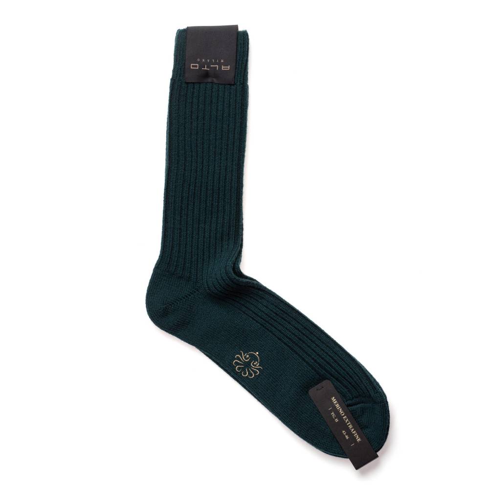 Тёплые объёмные носки из осенне-зимней коллекции итальянского бренда Alto Milano. Однотонная модель с традиционной ребристой фактурой отлично подойдёт для повседневной зимней обуви и дополнит casual гардероб в прохладное время года. Носки связаны из толстой мериносовой пряжи с добавлением полиамида и эластана для большей прочности и комфорта.