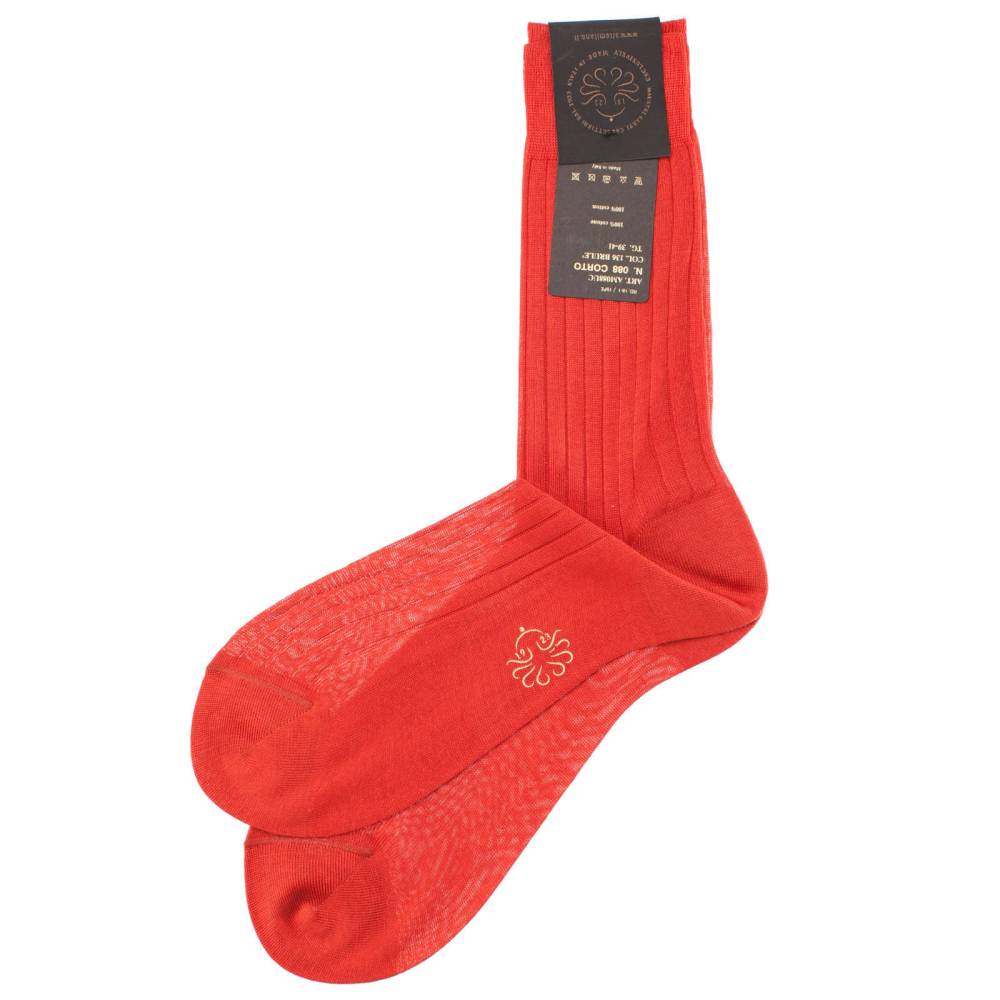 Яркие классические мужские носки Alto Milano насыщенного оранжевого цвета полностью выполнены из приятной на ощупь ткани, а именно из фильдекоса (fil d’ecosse / cotton lisle). Фильдекос – это туго скрученная хлопчатобумажная нить, созданная из лучших сортов хлопчатника. Носки из такого материала отличаются высокой прочностью и износостойкостью: они прекрасно держат форму и не портятся после стирок. Шов на мысе выполнен вручную, а не на машинке, поэтому он мягкий и гладкий.