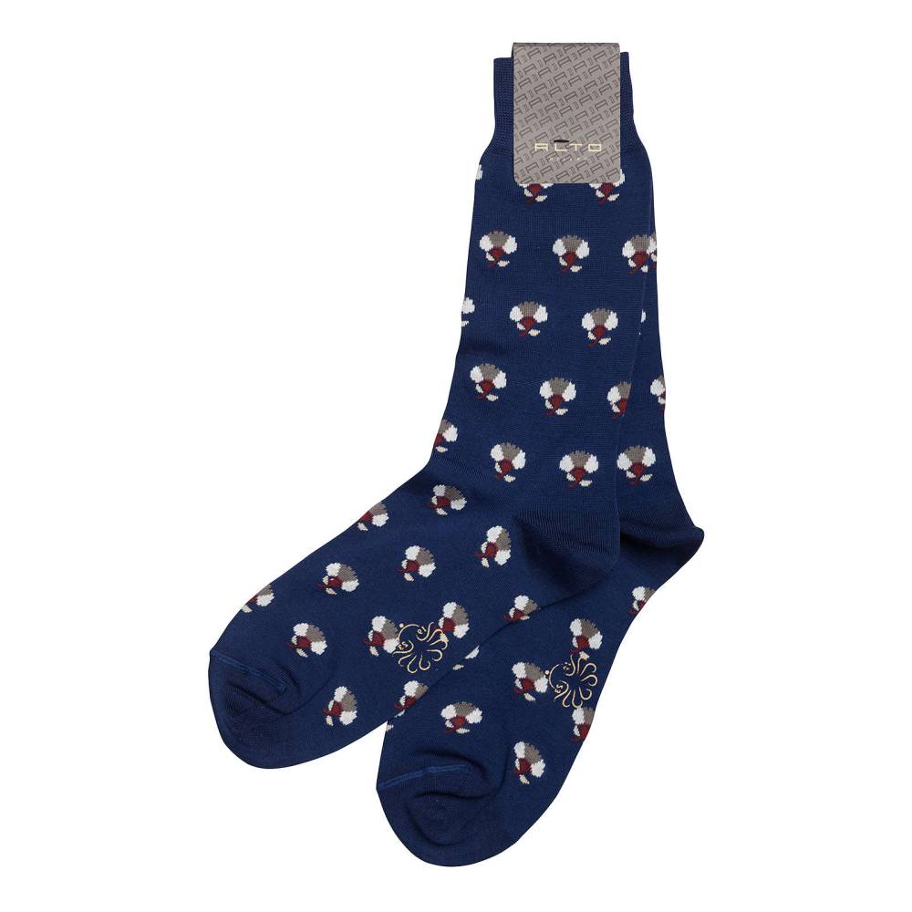 Оригинальные повседневные носки Alto Milano синего цвета с контрастным цветочным узором. Модель выполнена из мягкой хлопковой ткани с добавлением полиамида. Носки отличаются высокой прочностью и износостойкостью: они прекрасно сохраняют форму и выдерживают множество стирок.