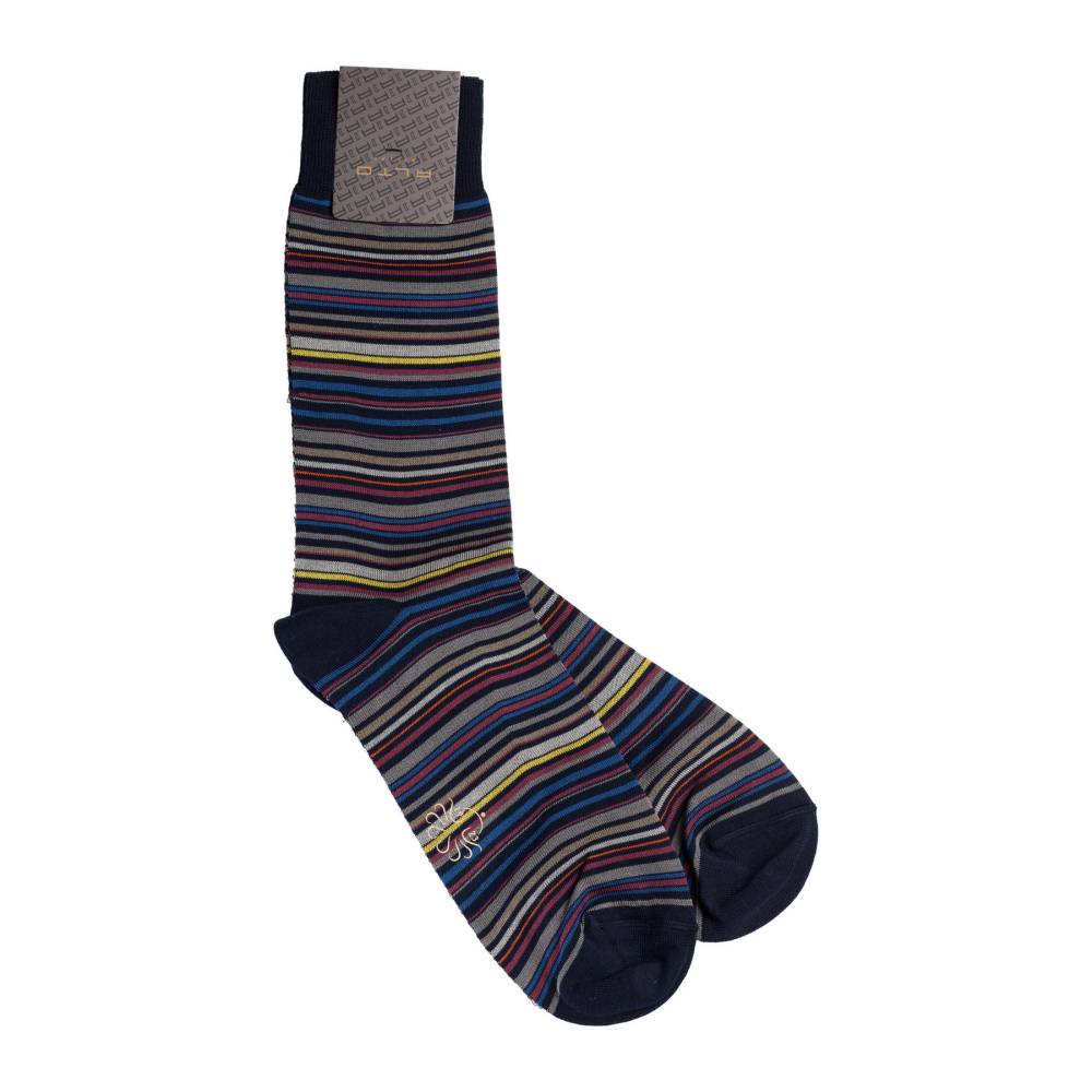 Элегантные носки Alto Milano в разноцветную горизонтальную полоску подойдут для повседневного и не слишком строгого классического гардероба. Модель выполнена из приятной на ощупь хлопковой ткани с добавлением полиамида. Носки отличаются высокой прочностью и износостойкостью: они прекрасно сохраняют форму и выдерживают множество стирок.