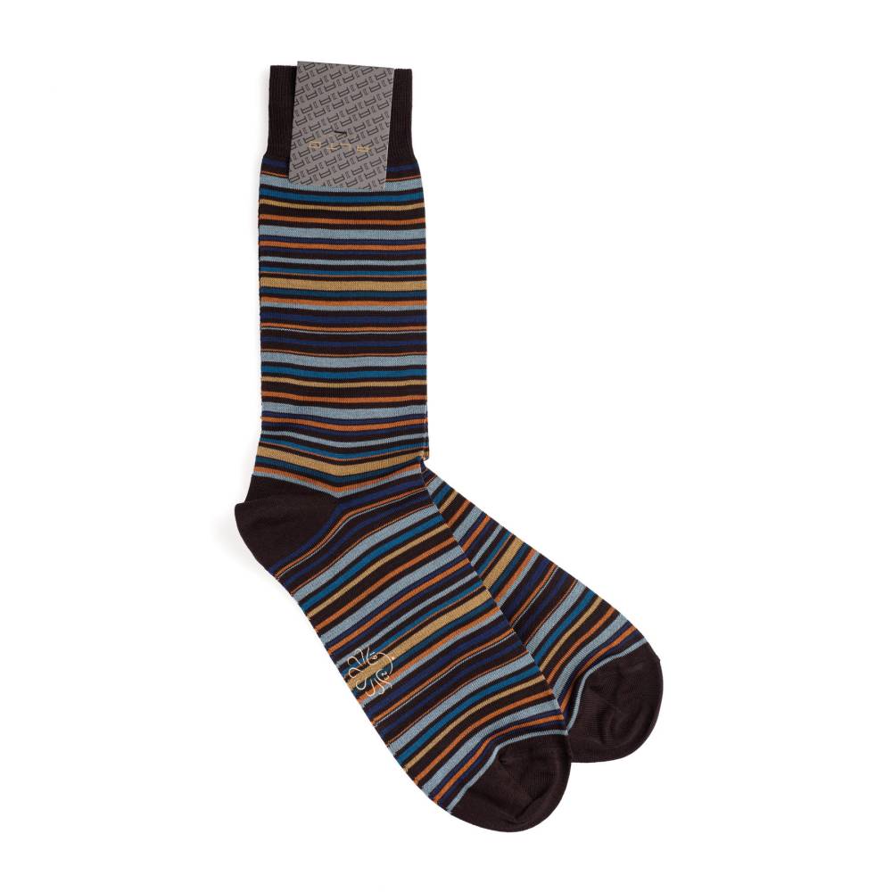 Яркие и харизматичные носки Alto Milano в разноцветную горизонтальную полоску подойдут для повседневного и не слишком строгого классического гардероба. Модель выполнена из приятной на ощупь хлопковой ткани с добавлением полиамида. Носки отличаются высокой прочностью и износостойкостью: они прекрасно сохраняют форму и выдерживают множество стирок.