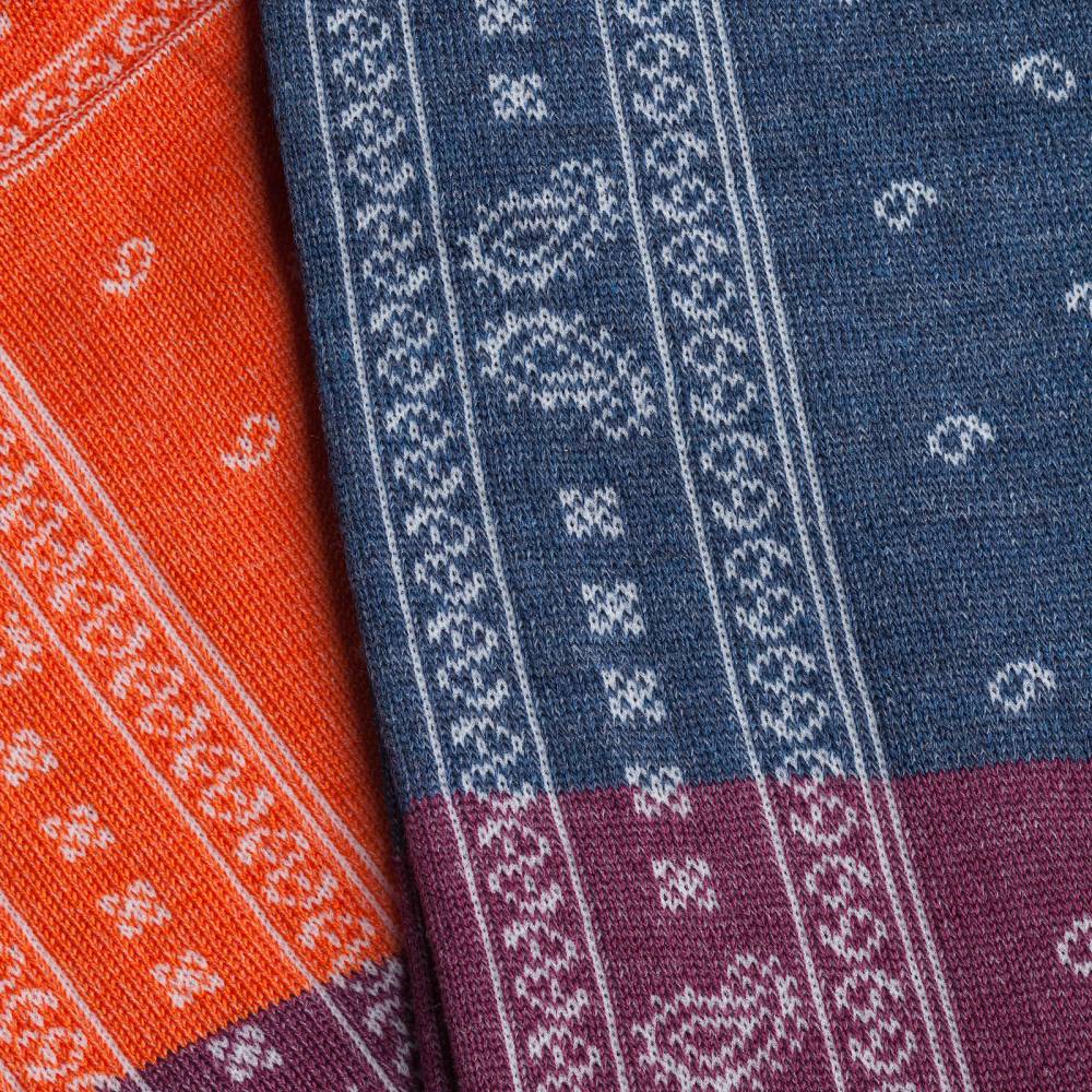 Яркие и харизматичные носки Alto Milano, сочетающие светло-синие, бордовые и оранжевые участки с узорами пейсли, подойдут для повседневного классического гардероба. Модель выполнена из приятной на ощупь хлопковой ткани с добавлением полиамида. Носки отличаются высокой прочностью и износостойкостью: они прекрасно сохраняют форму и выдерживают множество стирок.