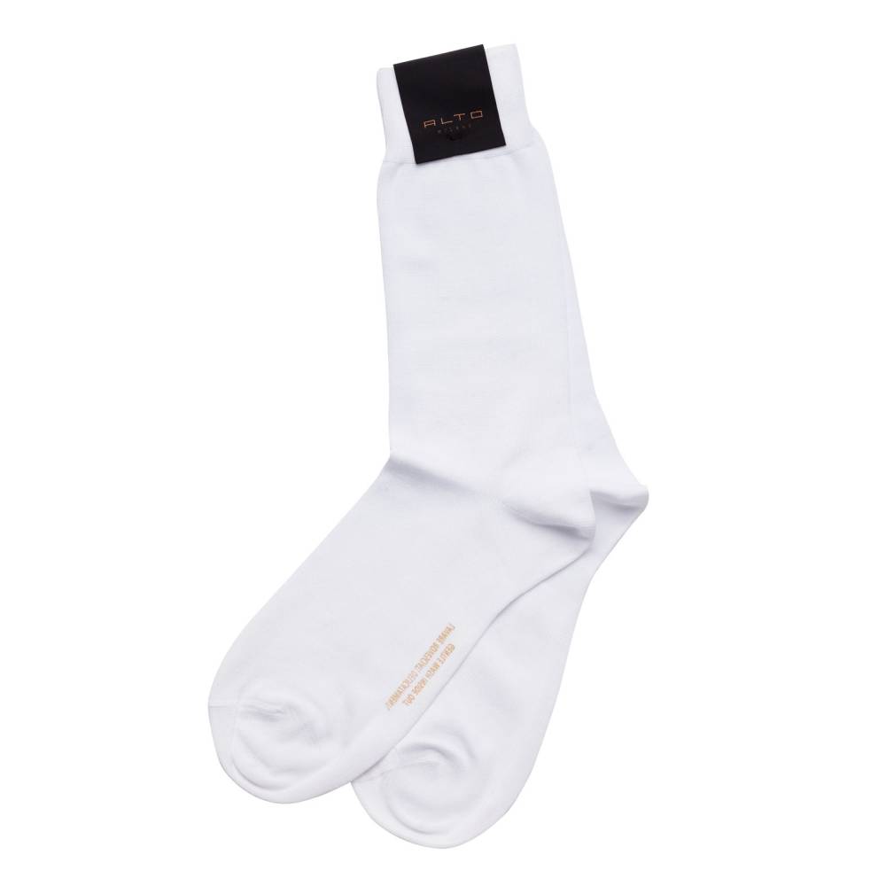 Гладкие повседневные носки Alto Milano белого цвета. Модель выполнена из приятной на ощупь хлопковой ткани с добавлением полиамида. Носки отличаются высокой прочностью и износостойкостью: они прекрасно сохраняют форму и выдерживают множество стирок.