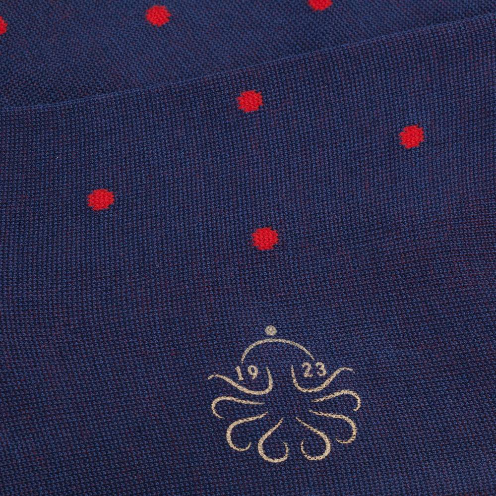 Элегантные и сдержанные носки Alto Milano синего цвета в красный горошек подойдут для повседневного классического гардероба. Модель выполнена из приятной на ощупь хлопковой ткани с добавлением полиамида. Носки отличаются высокой прочностью и износостойкостью: они прекрасно сохраняют форму и выдерживают множество стирок.
