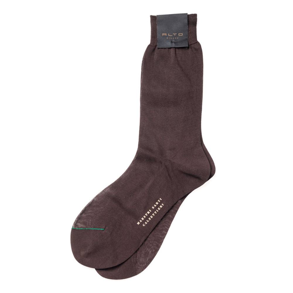 Гладкие повседневные носки Alto Milano сдержанного тёмно-коричневого цвета. Модель выполнена из приятной на ощупь хлопковой ткани с добавлением полиамида. Носки отличаются высокой прочностью и износостойкостью: они прекрасно сохраняют форму и выдерживают множество стирок.