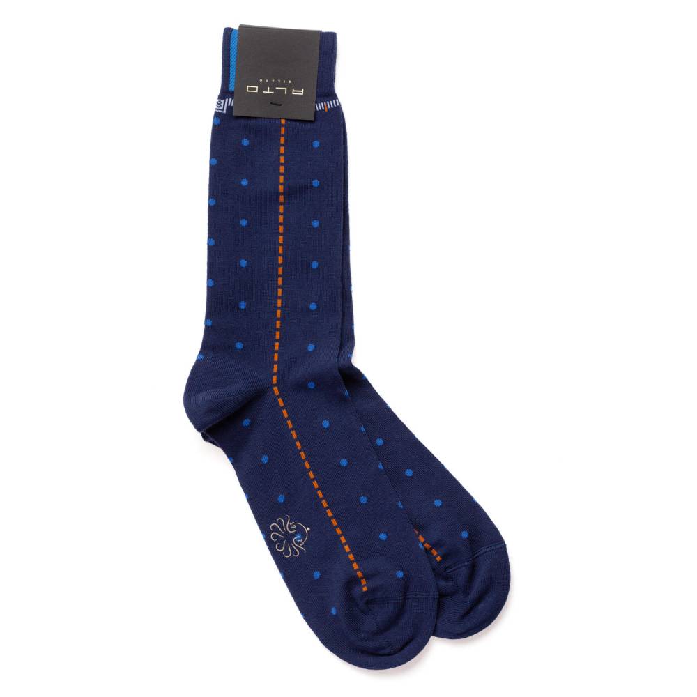 Оригинальные носки из капсульной коллекции итальянского бренда Alto Milano, посвящённой культовым моделям часов. Данная пара была выполнена в дизайне со схожими чертами и в цветовой гамме знаменитого квадратного хронографа TAG Heuer Monaco. Эти часы красовались на руке Стива МакКуина в фильме «Ле-Ман». Носки связаны из высококачественной хлопковой пряжи с добавлением полиамида для большей прочности. Носки из этой серии станут удачным приобретением для коллекционера, а также прекрасно подойдут в качестве подарка ценителю часов.