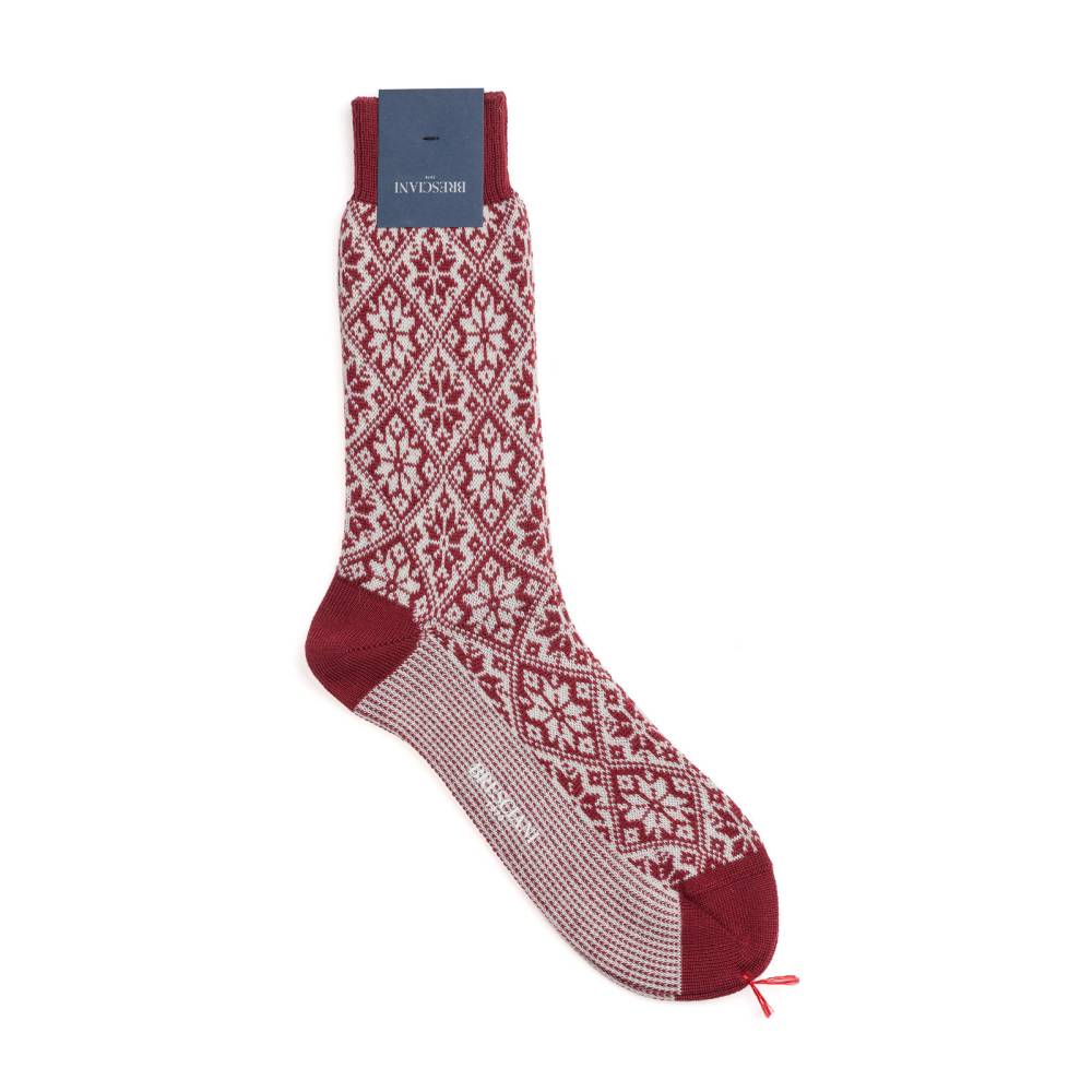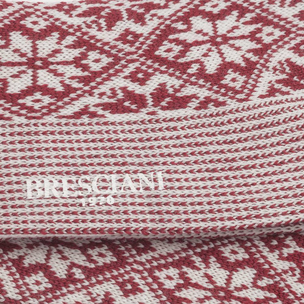 Плотные тёплые мужские носки Astrum премиум-класса итальянской марки Bresciani из Рождественской коллекции. Пряжа сделана из шерсти австралийских овец-мериносов двойного кручения с добавлением нейлона для долговечности. Модель украшена вытканными узорами в норвежском стиле. Нижняя часть слегка плотнее остальной поверхности носка и выполнена в виде продольных полос для большего комфорта.
