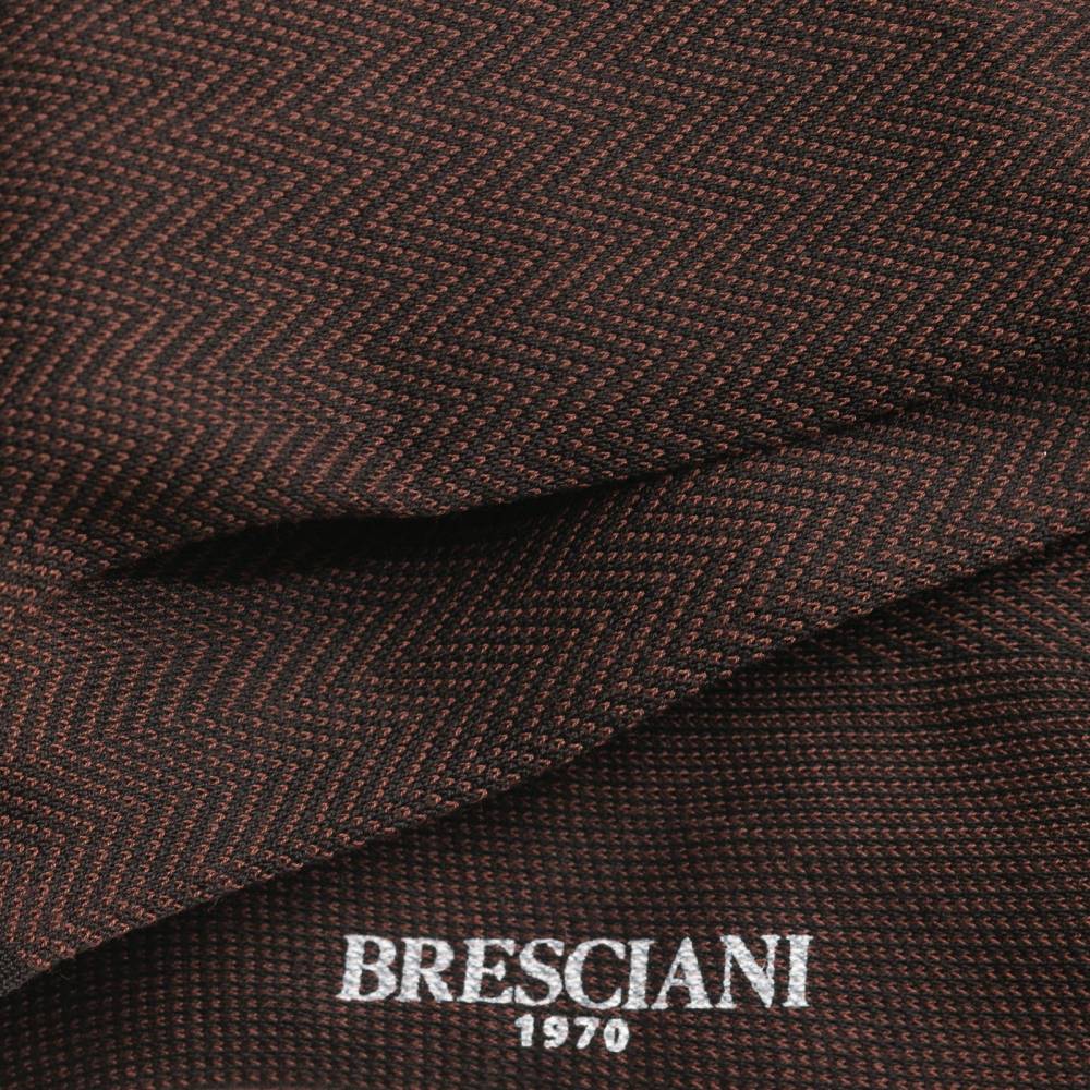 Мужские носки премиум-класса итальянского бренда Bresciani. Традиционный узор «ёлочка» (herringbone) коричневого цвета создан методом жаккардового плетения непосредственно в структуре ткани, что делает его долговечным и фактурным. Модель из фильдекосовой пряжи (Fil d'Écosse) смеси экстрадлинноволокнистого египетского хлопка Giza 45 и Giza 87 двойного кручения (2-ply). Плотность вязки в 240 игл, двойная мерсеризация и опаливание волокон придают полотну шелковистый блеск, гладкость и прочность. Выполненный вручную бесшовный мысок (Hand linked) исключает давление и гарантирует комфорт в любой обуви. Мерсеризованный хлопок обеспечивает идеальную терморегуляцию и подходит для весенне-летнего гардероба.
