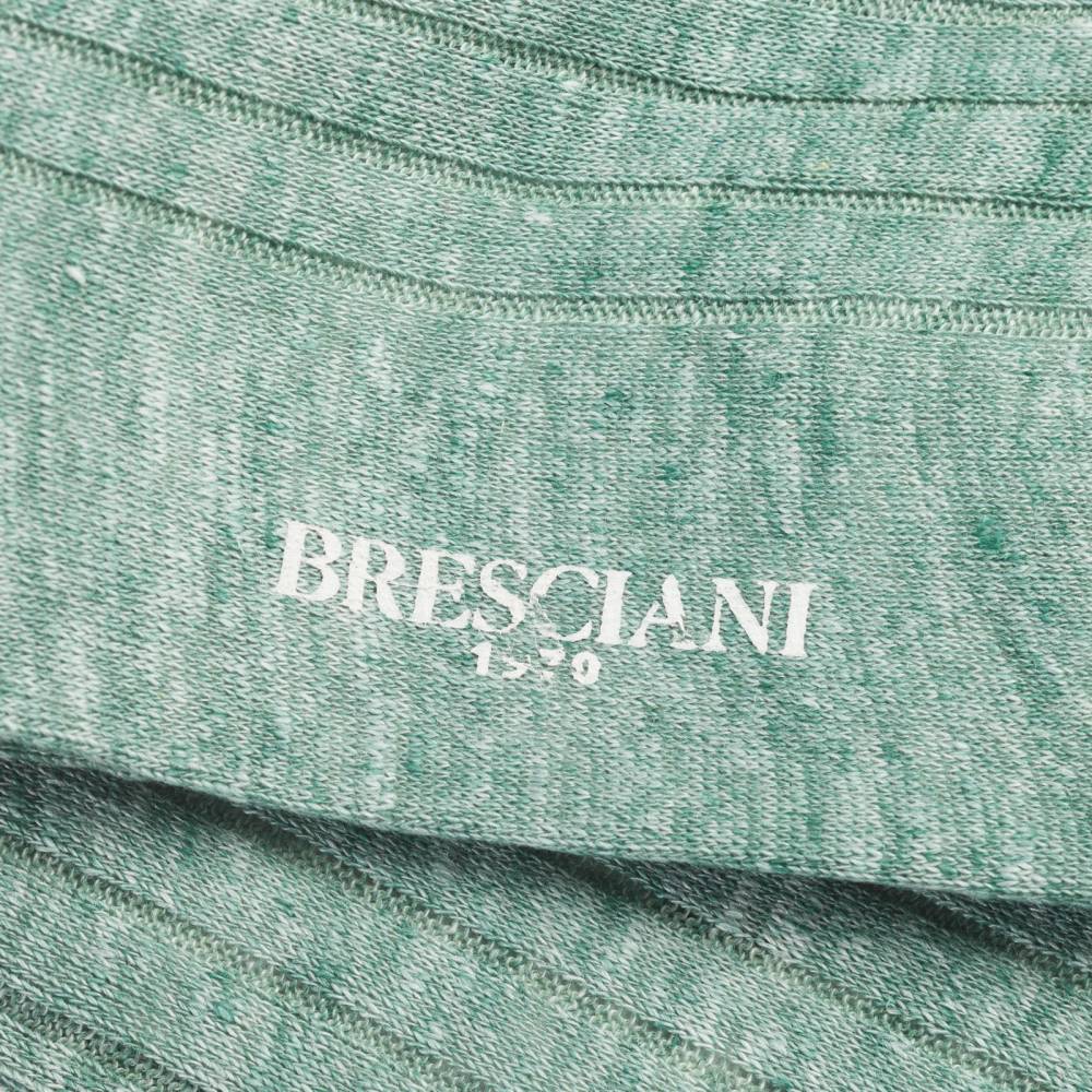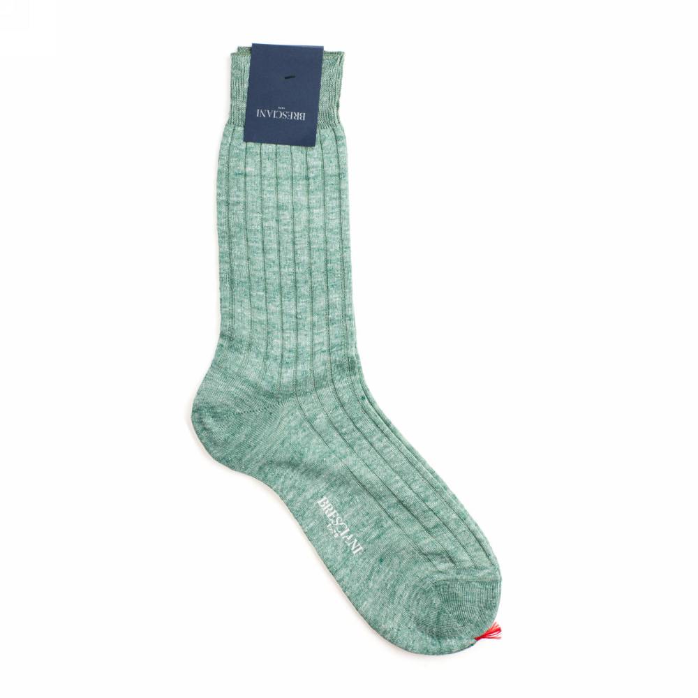 Мужские носки премиум-класса итальянской мануфактуры Bresciani. Ребристая модель зелёного цвета меланж выполнена из чистого льна, выращенного во Франции. Льняное полотно обладает природной гипоаллергенностью и высокой воздухопроницаемостью, обеспечивая исключительный комфорт даже в самую жаркую погоду.