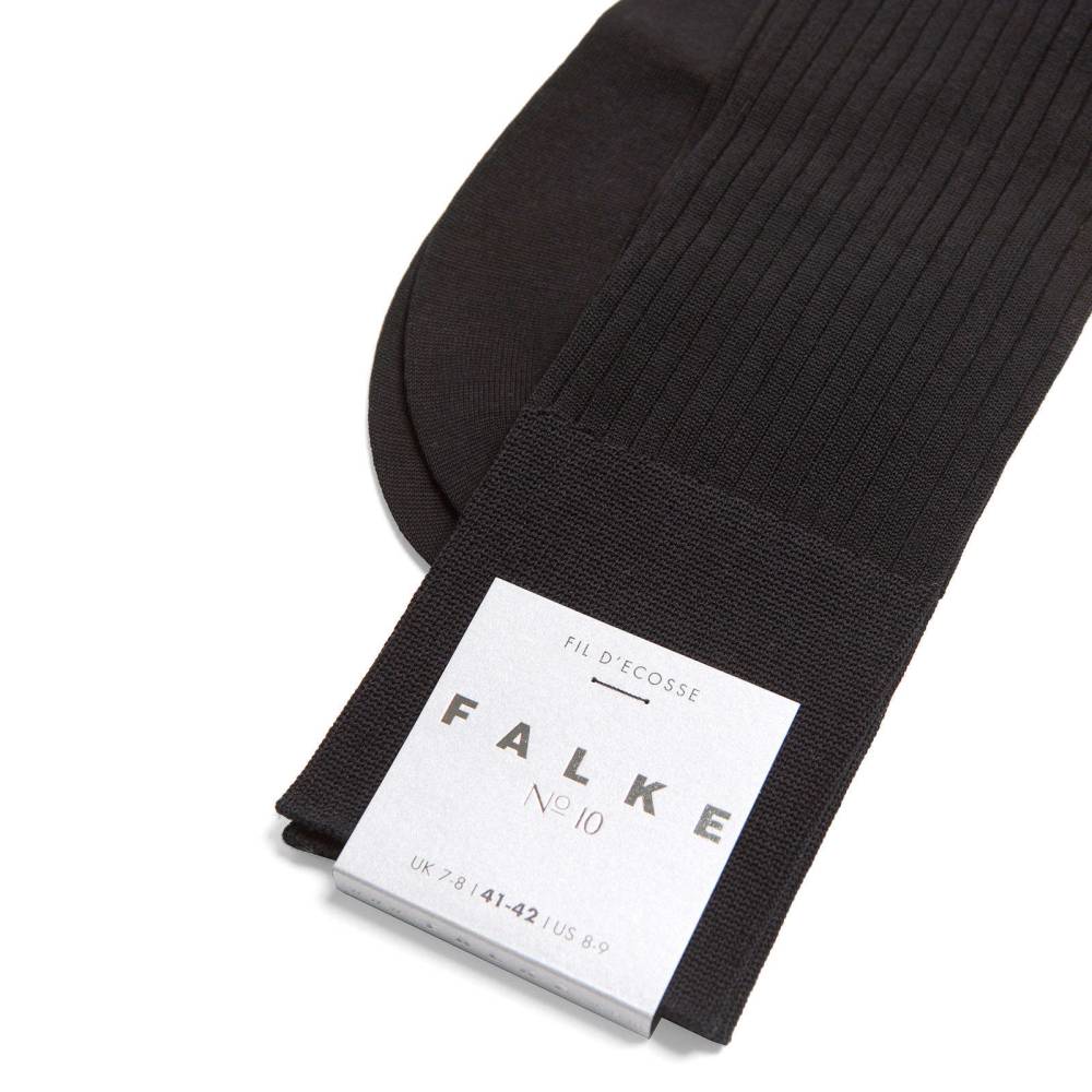 Носки наивысшего качества №10 чёрного цвета из линии Falke Luxury Collection. Классическая ребристая фактура. Носки полностью выполнены из высококачественного хлопка, а именно из фильдекоса (fil d’ecosse) – туго скрученной хлопчатобумажной нити, созданной из лучших сортов египетского хлопчатника. Носки из такого материала отличаются высокой прочностью и износостойкостью: они прекрасно держат форму и не портятся после стирок. Пятка и мыс дополнительно защищены от трения и нагрузок. Все швы выполнены вручную. Носки идеально подходят для самых значимых мероприятий, которые обязывают к смокингу или фраку.
