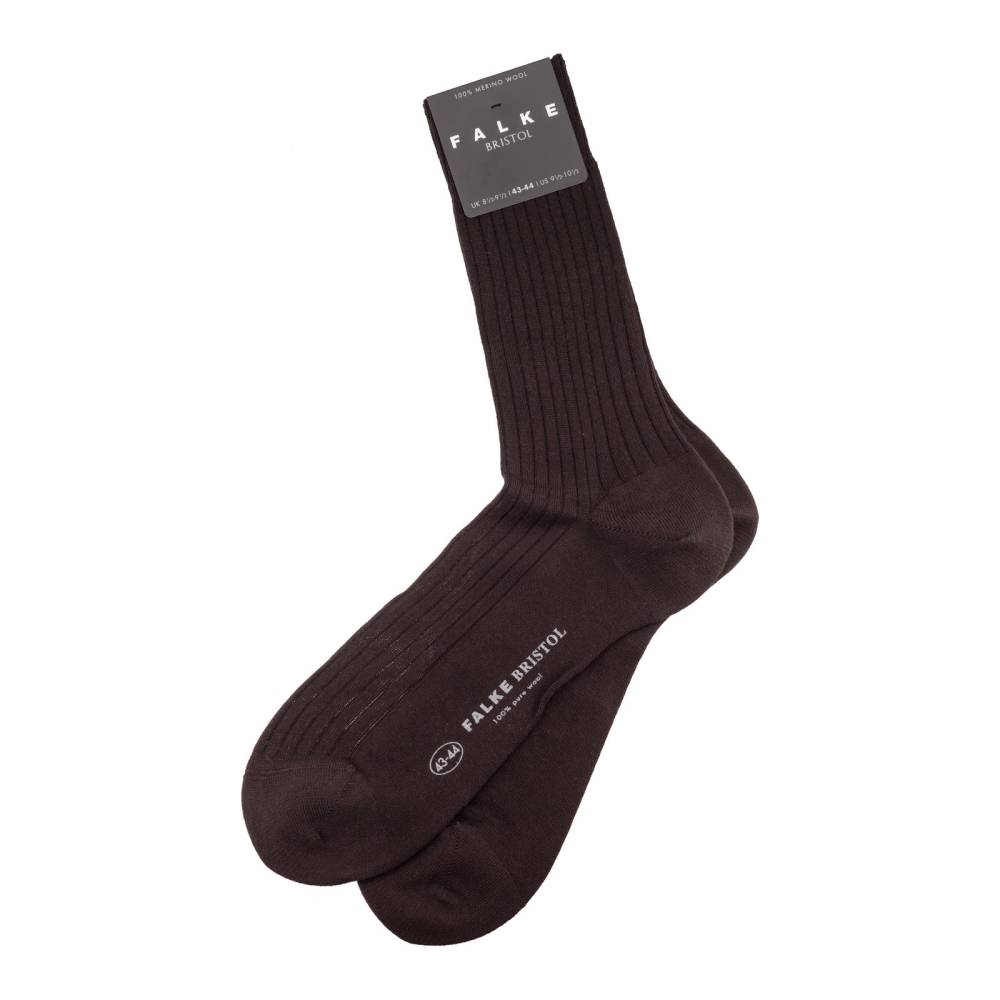 Тёплые ребристые носки Bristol немецкой фирмы Falke выполнены из 100% натуральной мериносовой шерсти тёмно-коричневого цвета. Тонкая и приятная на ощупь шерсть отличается высокой гигроскопичностью: она впитывает влагу и сохраняет тепло, поддерживая оптимальную температуру. Широкая и мягкая резинка обеспечивает плотную посадку и не сдавливает ногу. Дополнительное усиление области стопы повышает износостойкость и прочность ткани. Гладкий и аккуратный шов на мыске выполнен вручную.