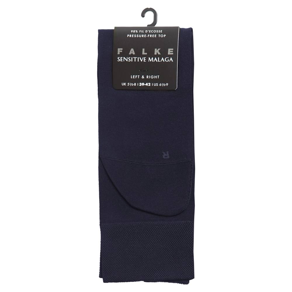Носки Sensitive Malaga немецкой фирмы Falke созданы с учётом анатомических особенностей правой и левой стопы (маркировка R/L). Модель выполнена из хлопковых нитей (98% хлопок, 2% эластан) тёмно-синего цвета, прошедших мерсеризацию. После такой обработки пряжа становится мягче и прочнее, а насыщенный оттенок приобретает благородный шёлковистый блеск. Особенность серии — комфортная манжета без давления, которая не сжимает ногу и не впивается в кожу. Благодаря отсутствию сдавливания носки не затрудняют кровообращение и не способствуют появлению отёков, что делает их идеальными для диабетиков и комфортными для длительного ношения в течение всего дня. Усиленные пятка и мыс защищены от нагрузок, а плоские швы ручной работы исключают натирание, позволяя сочетать модель как с деловыми, так и с повседневными образами.