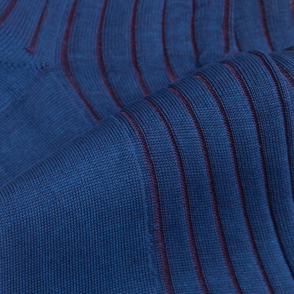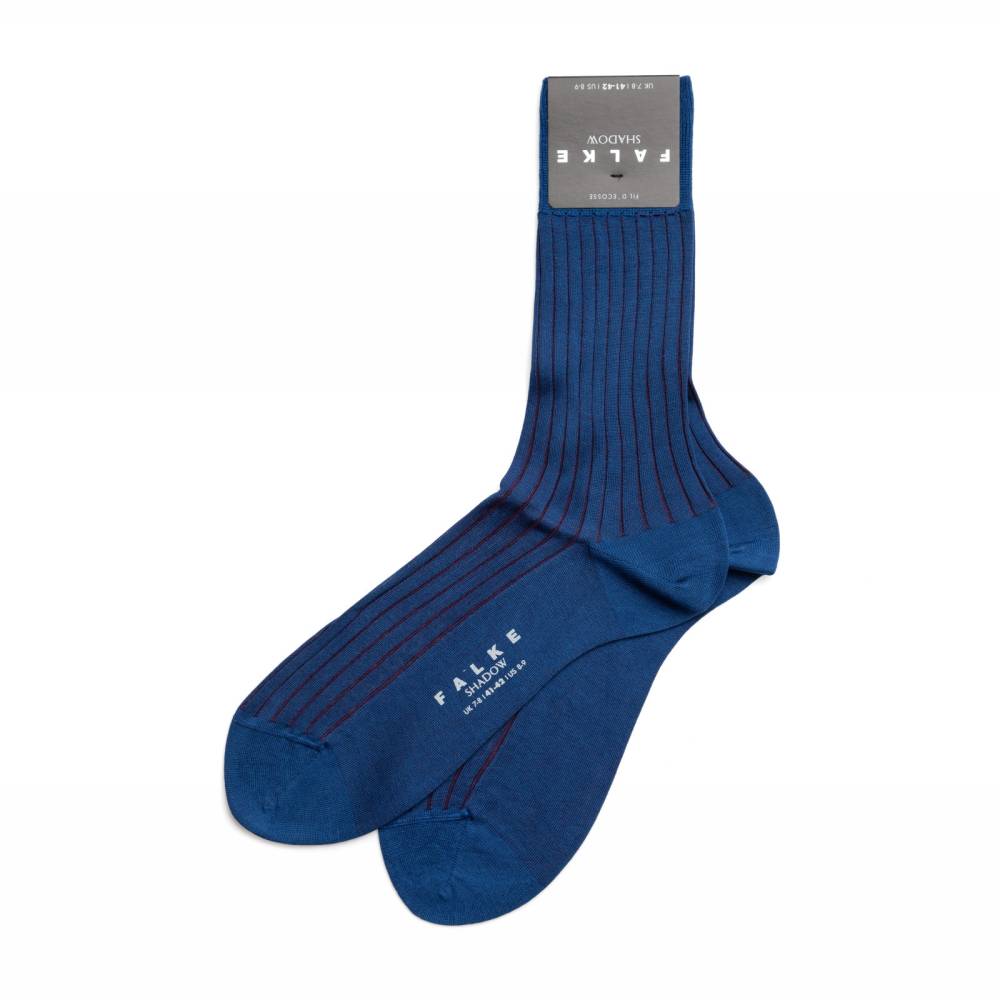 Классические мужские носки Falke Shadow синего цвета с ребристой фактурой. Узнаваемой особенностью этой серии носков являются контрастные полосы другого цвета, проявляющиеся при натяжении. В данном варианте полосы фиолетового цвета. Модель выполнена из мерсеризованного хлопка с добавлением нейлона для большей прочности. В области стопы ткань более плотная, что создаёт усиление зон нагрузки. Шов на мыске выполнен вручную, поэтому он мягкий и гладкий.