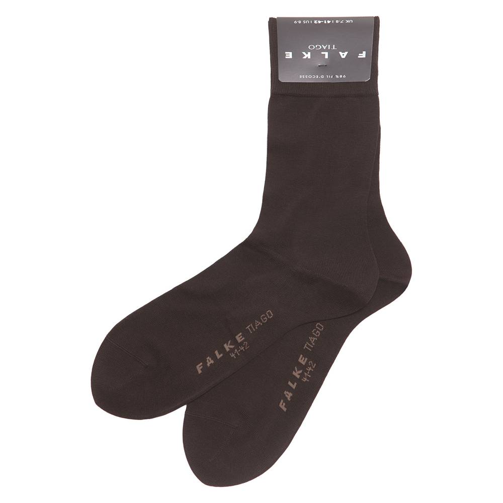 Носки Tiago тёмно-коричневого цвета немецкой фирмы Falke выполнены из высококачественного хлопка, а именно из фильдекоса, или шотландской нити (fil d’ecosse / cotton lisle) в сочетании с эластаном. Фильдекос – это туго скрученная хлопчатобумажная нить, созданная из лучших сортов хлопчатника. Носки из такого материала отличаются высокой прочностью и износостойкостью: они прекрасно держат форму и не портятся после стирок. Шов на мысе выполнен вручную, а не на машинке, поэтому он мягкий и гладкий. В области стопы имеется дополнительный слой хлопковой ткани, что создает усиление зон нагрузки.