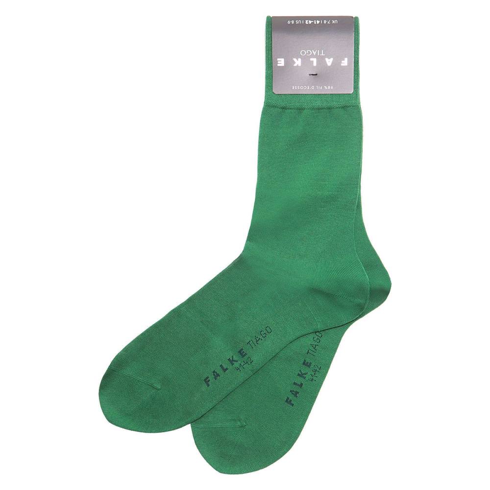 Носки Tiago зелёного цвета немецкой фирмы Falke выполнены из высококачественного хлопка, а именно из фильдекоса, или шотландской нити (fil d’ecosse / cotton lisle) в сочетании с эластаном. Фильдекос – это туго скрученная хлопчатобумажная нить, созданная из лучших сортов хлопчатника. Носки из такого материала отличаются высокой прочностью и износостойкостью: они прекрасно держат форму и не портятся после стирок. Шов на мысе выполнен вручную, а не на машинке, поэтому он мягкий и гладкий. В области стопы имеется дополнительный слой хлопковой ткани, что создает усиление зон нагрузки.