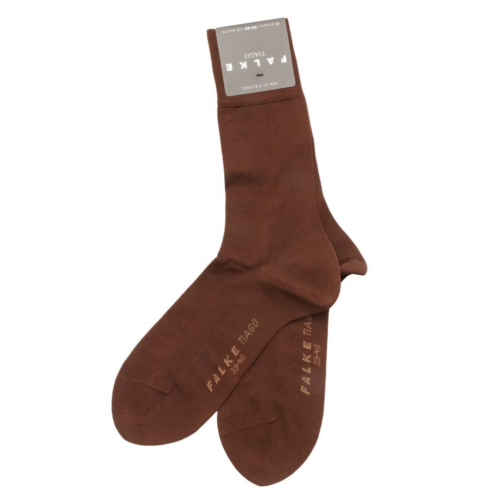 Носки Tiago коричневого цвета немецкой фирмы Falke выполнены из высококачественного хлопка, а именно из фильдекоса, или шотландской нити (fil d’ecosse / cotton lisle) в сочетании с эластаном. Фильдекос – это туго скрученная хлопчатобумажная нить, созданная из лучших сортов хлопчатника. Носки из такого материала отличаются высокой прочностью и износостойкостью: они прекрасно держат форму и не портятся после стирок. Шов на мысе выполнен вручную, а не на машинке, поэтому он мягкий и гладкий. В области стопы имеется дополнительный слой хлопковой ткани, что создает усиление зон нагрузки.