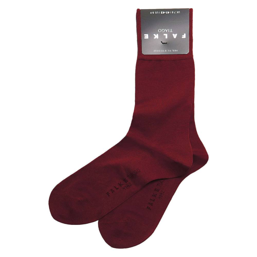 Носки Tiago бордового цвета немецкой фирмы Falke выполнены из высококачественного хлопка, а именно из фильдекоса, или шотландской нити (fil d’ecosse / cotton lisle) в сочетании с эластаном. Фильдекос – это туго скрученная хлопчатобумажная нить, созданная из лучших сортов хлопчатника. Носки из такого материала отличаются высокой прочностью и износостойкостью: они прекрасно держат форму и не портятся после стирок. Шов на мысе выполнен вручную, а не на машинке, поэтому он мягкий и гладкий. В области стопы имеется дополнительный слой хлопковой ткани, что создает усиление зон нагрузки. Удлиненная манжета обеспечивает посадку на ноге без складок.