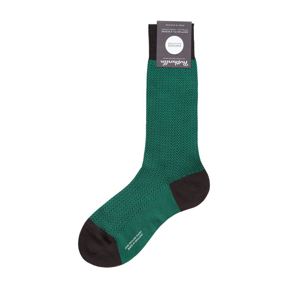 Модель имеет узнаваемый узор «ёлочка» в тёмно-синих и зелёных тонах. Данные носки можно сочетать как с повседневной обувью, джинсами и брюками чинос, так и с деловыми туфлями и костюмами.