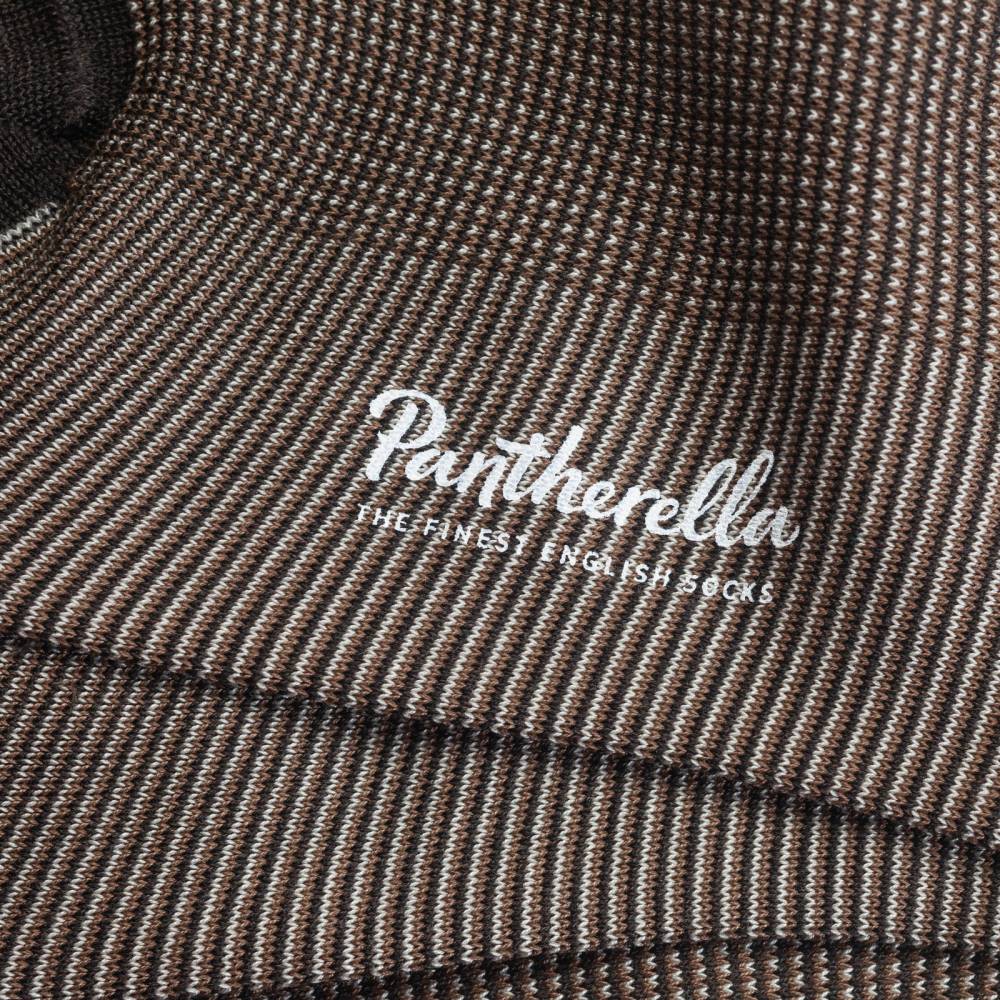 Мужские носки премиум-класса английской компании Pantherella из коллекции Vintage. Пара выполнена с соблюдением высочайших стандартов качества, которых фабрика придерживается начиная с даты своего основания в 1937 году. Пряжа изготовлена в Италии. В процессе мерсеризации с пряжи удаляются все свободные волокна, благодаря чему она становится гладкой и блестящей. В Англии на фабрике Pantherella пряжа превращается в готовое изделие. Особенностью носков можно отметить гладкий и практически неощущаемый шов на носке.
