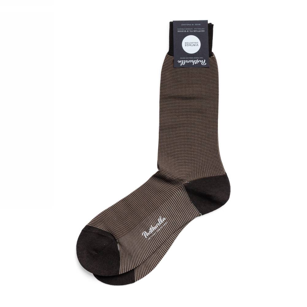 Модель имеет сдержанный узор «птичий глаз» в бежевых, светло-коричневых и коричневых тонах. Данные носки можно сочетать как с повседневной обувью, джинсами и брюками чинос, так и с умеренно деловыми туфлями и костюмами.