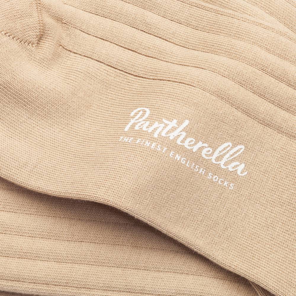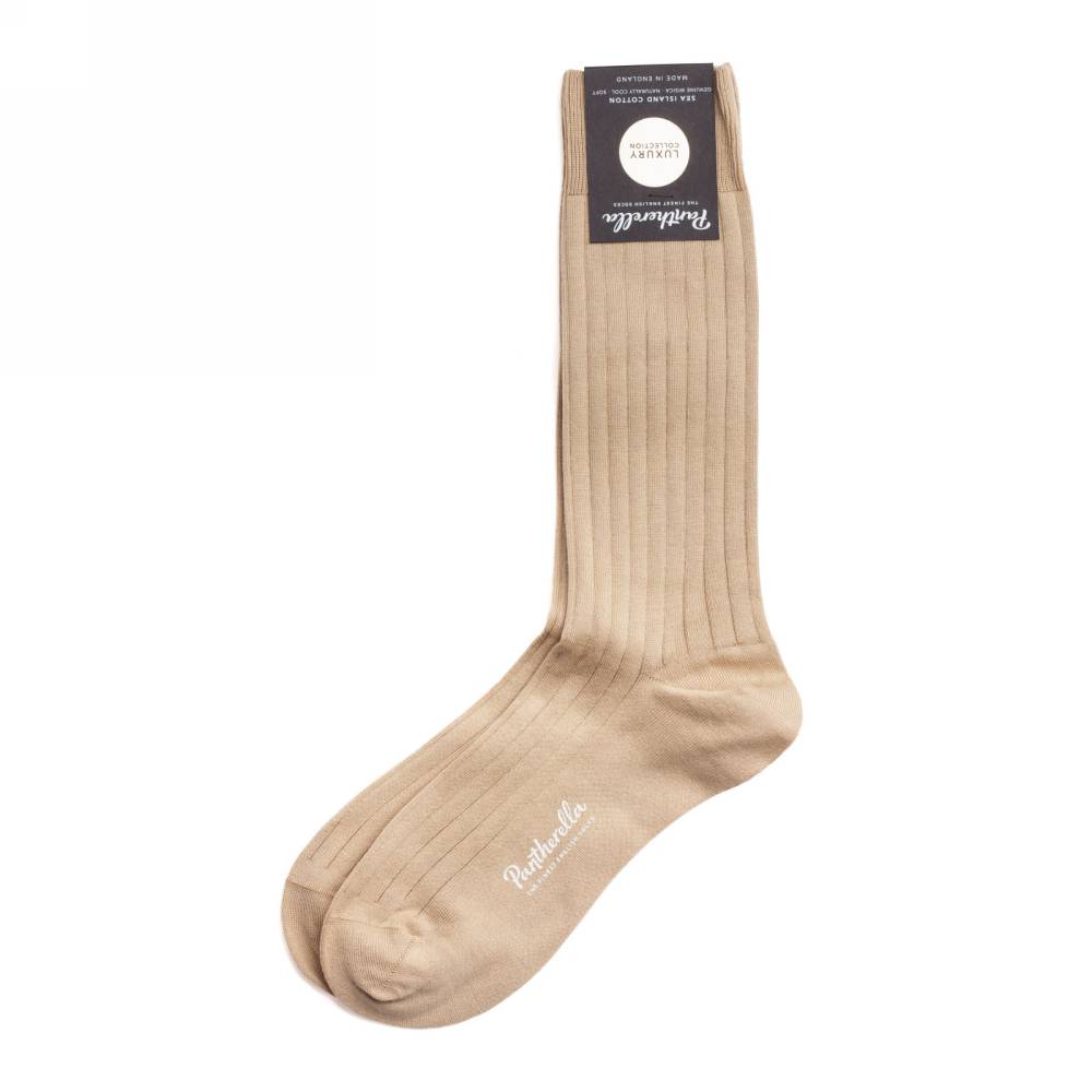 Бежевые мужские носки Pembrey — это носки премиум-класса английской компании Pantherella из коллекции Luxury. Пара выполнена с соблюдением высочайших стандартов качества, которых фабрика придерживается начиная с даты своего основания в 1937 году. Пряжа изготовлена из хлопка Sea Island, который выращивают лишь на Барбадосе и Ямайке. Собранный хлопок проходит тщательную очистку, а затем специальная организация — West Indian Sea Island Cotton Association — определяет, сертифицировать ли сырьё как хлопок Sea Island. По прочности этот материал сопоставим с шёлком, а мягкостью напоминает кашемир. В Англии на фабрике Pantherella на станках с 200 иглами и применением ручного труда пряжа превращается в готовое изделие. Особенностью носков можно отметить гладкий и практически неощущаемый шов на носке.