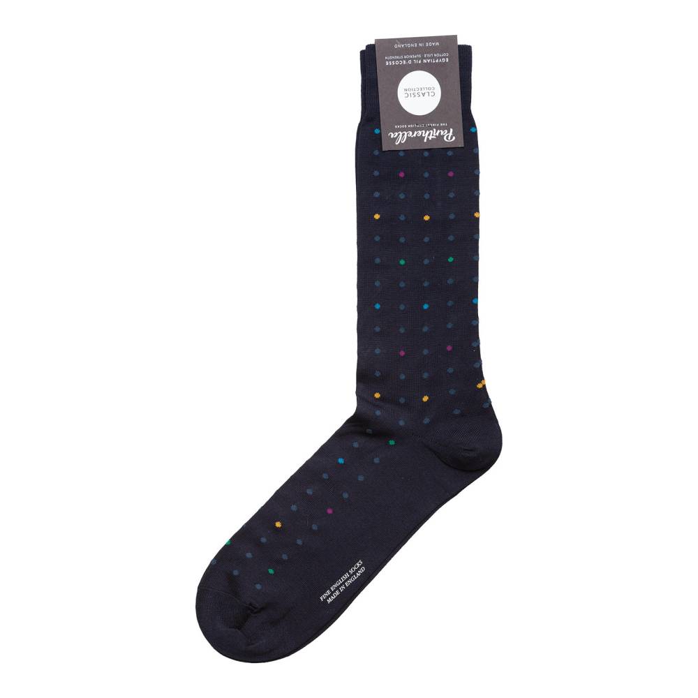 Данные носки хорошо сочетаются с умеренно неформальной одеждой и обувью благодаря разноцветным точкам, составляющим классический узор «горох».