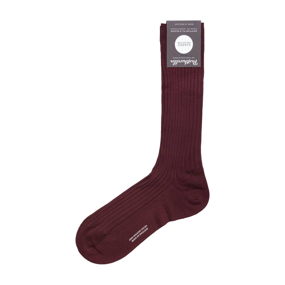 Бордовые мужские носки Danvers — это носки премиум-класса английской компании Pantherella из коллекции Classic. Пара выполнена с соблюдением высочайших стандартов качества, которых фабрика придерживается начиная с даты своего основания в 1937 году. Создание данной пары начинается со сбора и обработки длинноволокнистого хлопка Giza 88 в дельте реки Нил (Египет). Затем уже в Италии из него производят фильдекосовую пряжу. В процессе мерсеризации с пряжи удаляются все свободные волокна, благодаря чему она становится гладкой и блестящей. В Англии на фабрике Pantherella на станках с 200 иглами и применением ручного труда пряжа превращается в готовое изделие. Особенностью носков можно отметить гладкий и практически неощущаемый шов на носке.